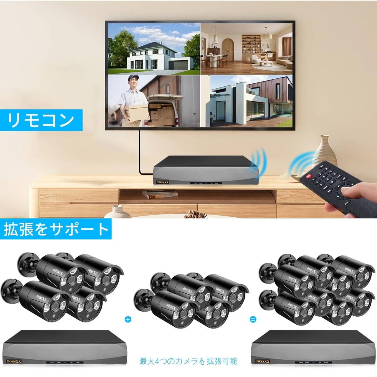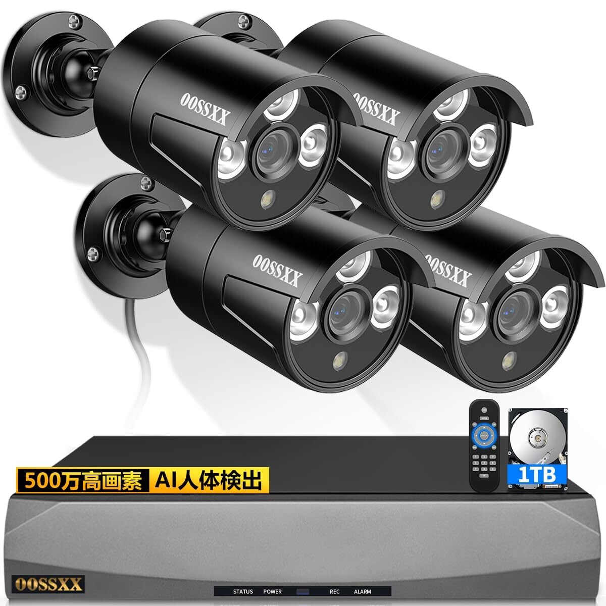 【在庫処分】【最強翌日配送・4K800万画素録画機・AI人体検知・音声録画】 OOSSXX 防犯カメラ 有線 4台500万画素 poe 防犯カメラセットランキング 監視カメラ・録画機セット 屋内 屋外 防犯カメラセットpoe給電 スマホ対応 セキュリティ対策 黒