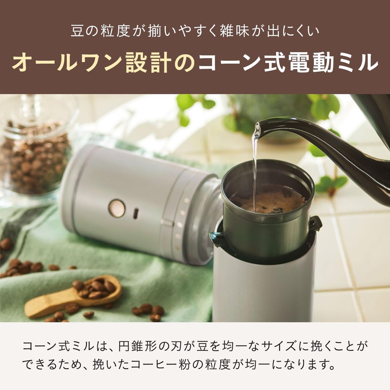 BRUNO パーソナル電動ミルコーヒーメーカー コンパクト 電動ミル ドリッパー タンブラー 充電式 ポータブル キャンプ アウトドア ホワイト BHK301-WH
