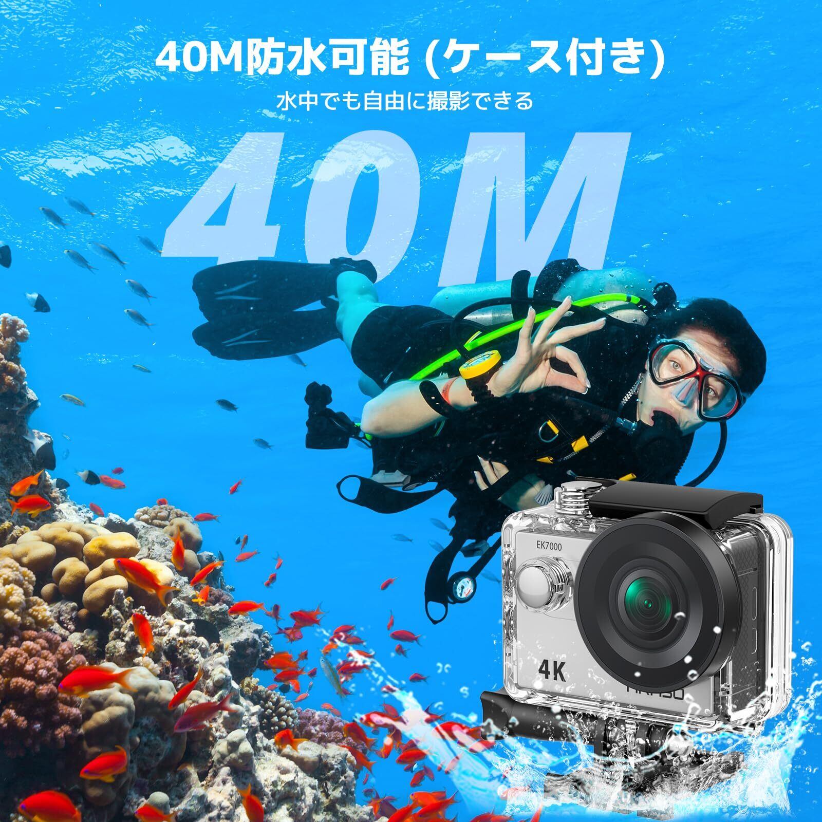 AKASO アクションカメラ EK7000 4K30FPS 20MP 水中カメラ WiFi搭載 外部マイク対応 30M防水 HDMI出力 170度広角レンズ リモコン付き 1050mAhバッテリー2個付き アクションカム ウェアラブルカメラ 豊富なアクセサリー バイク/自転車に取り付け可能 シルバー