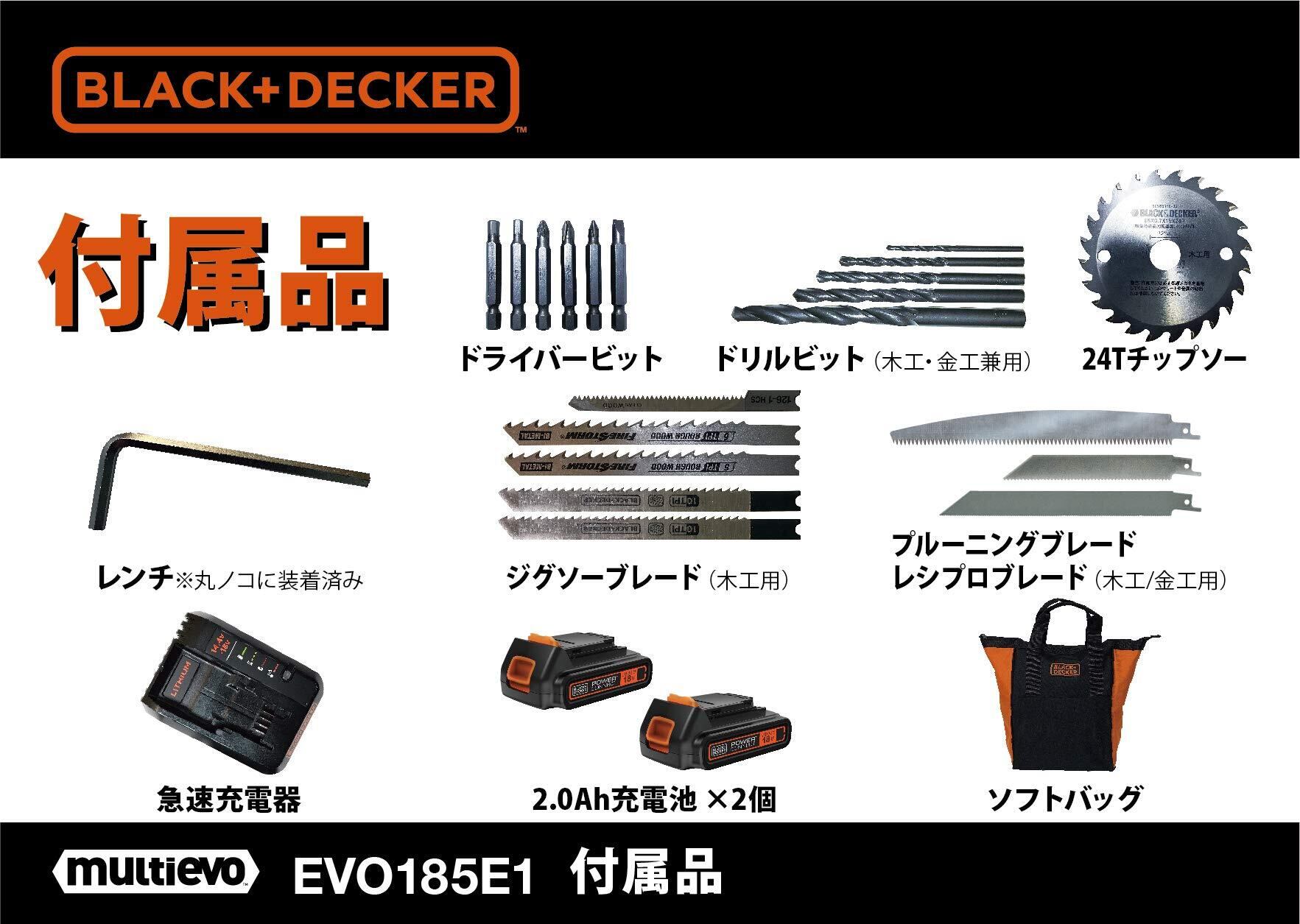 【2022最新】【オンライン限定商品】ブラックアンドデッカー(BLACK+DECKER) 18V マルチツール EVO185E1 コードレス 電動工具 DIY用 インパクトドライバー・ドリルドライバー・丸ノコ・ジグソー・レシプロソーを1台で ビット・バッテリー 付き | ニコニコSHOP