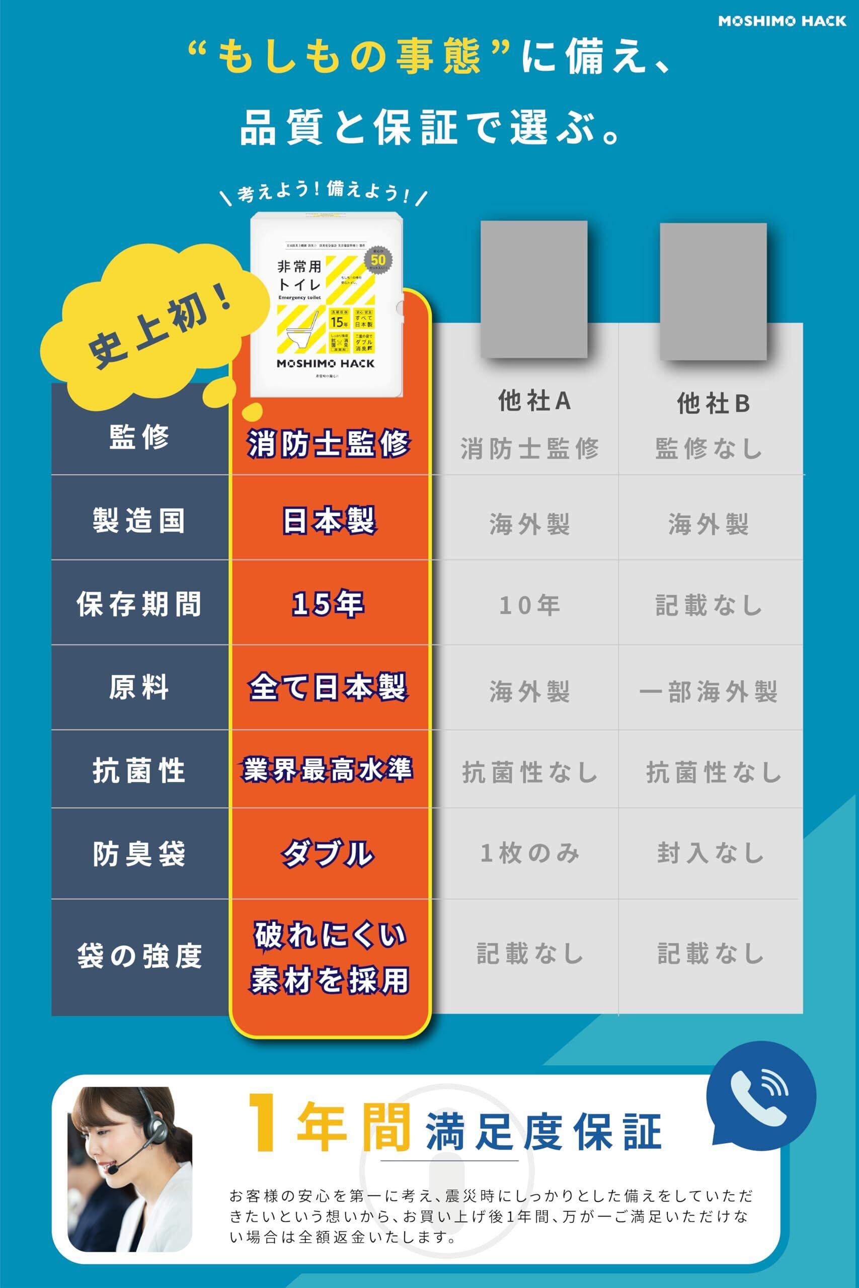 モシモハック 簡易トイレ 100回分 ポータブルトイレ 携帯トイレ 防災グッズ 非常用トイレ 防災士 製作 日本製 防臭 凝固剤 家族 15年保存