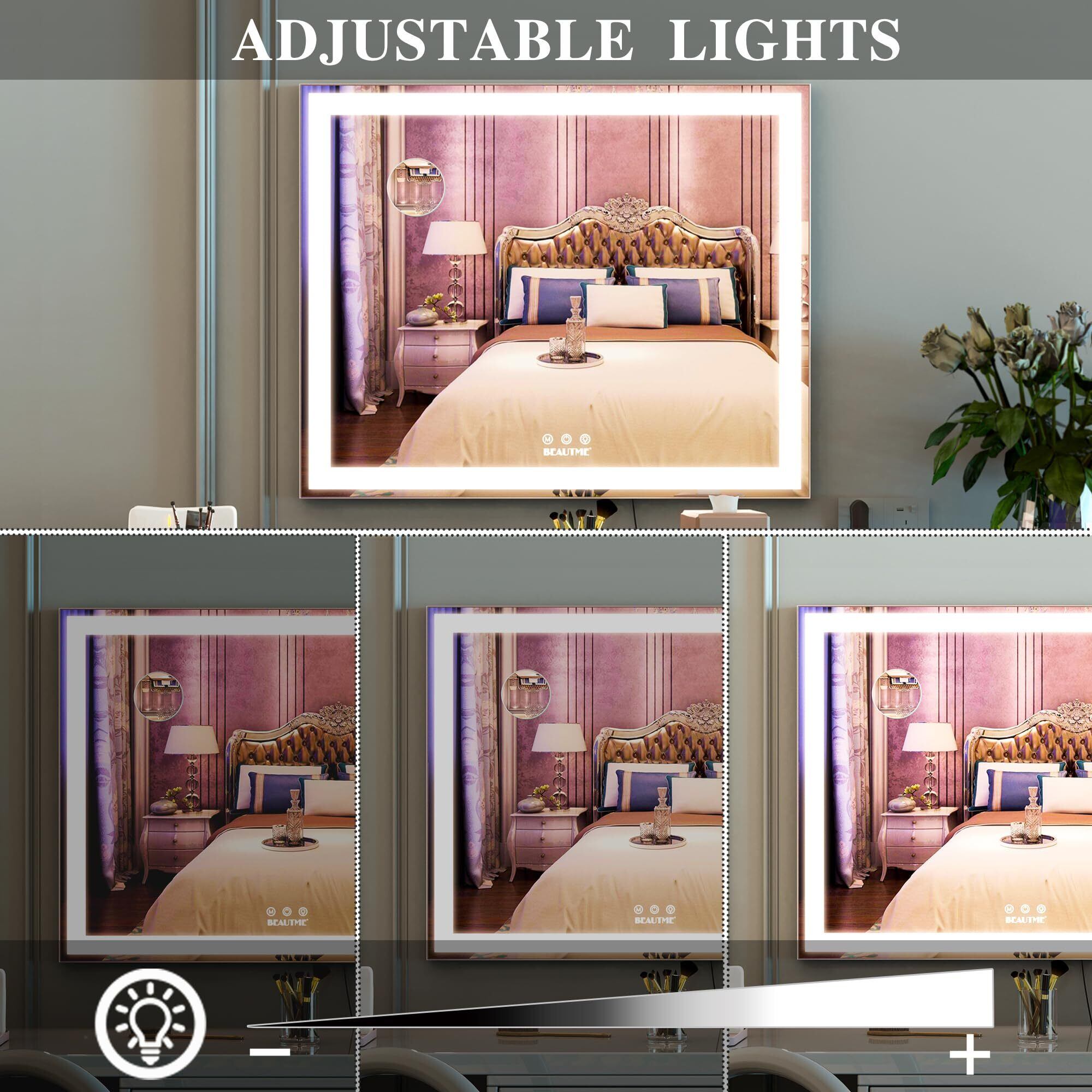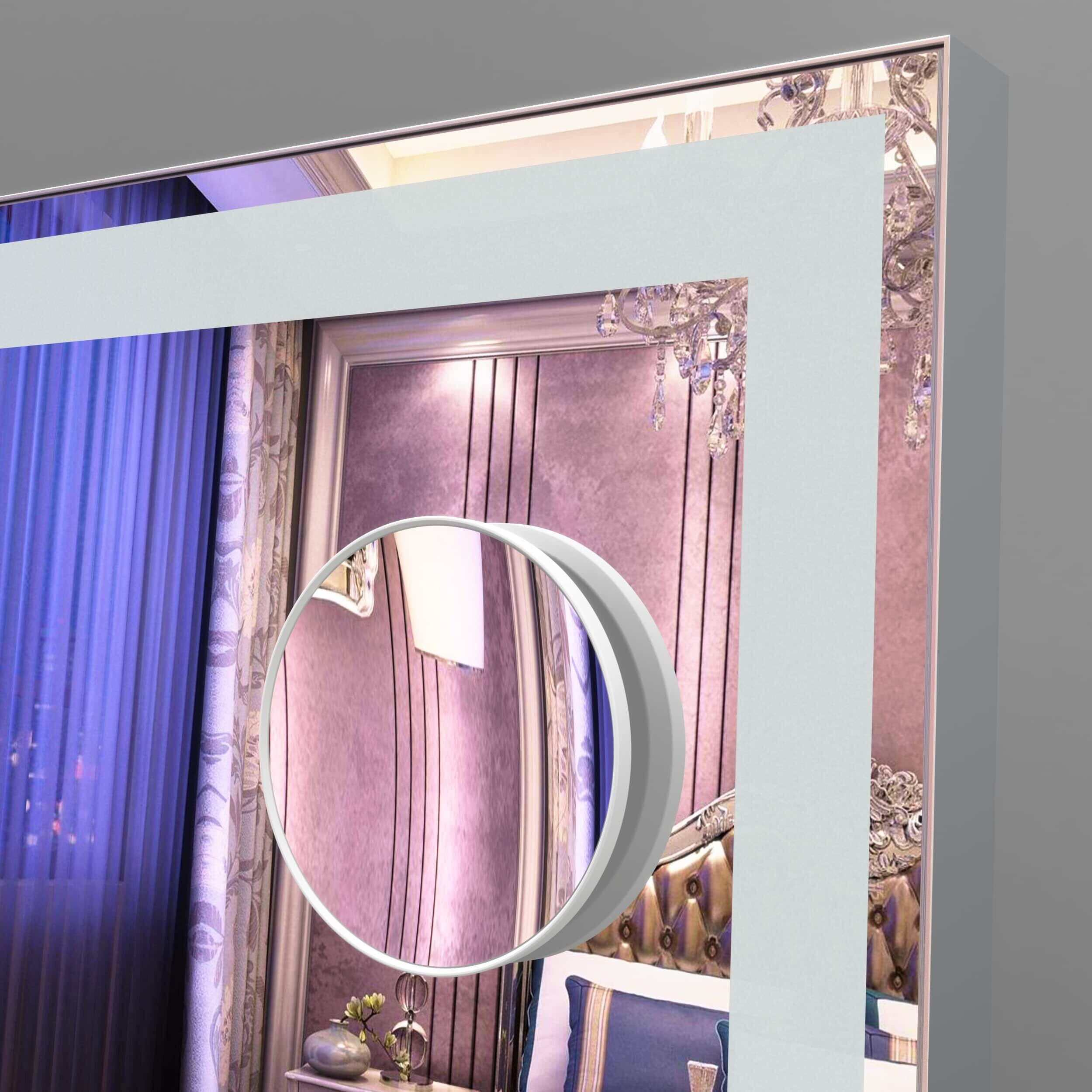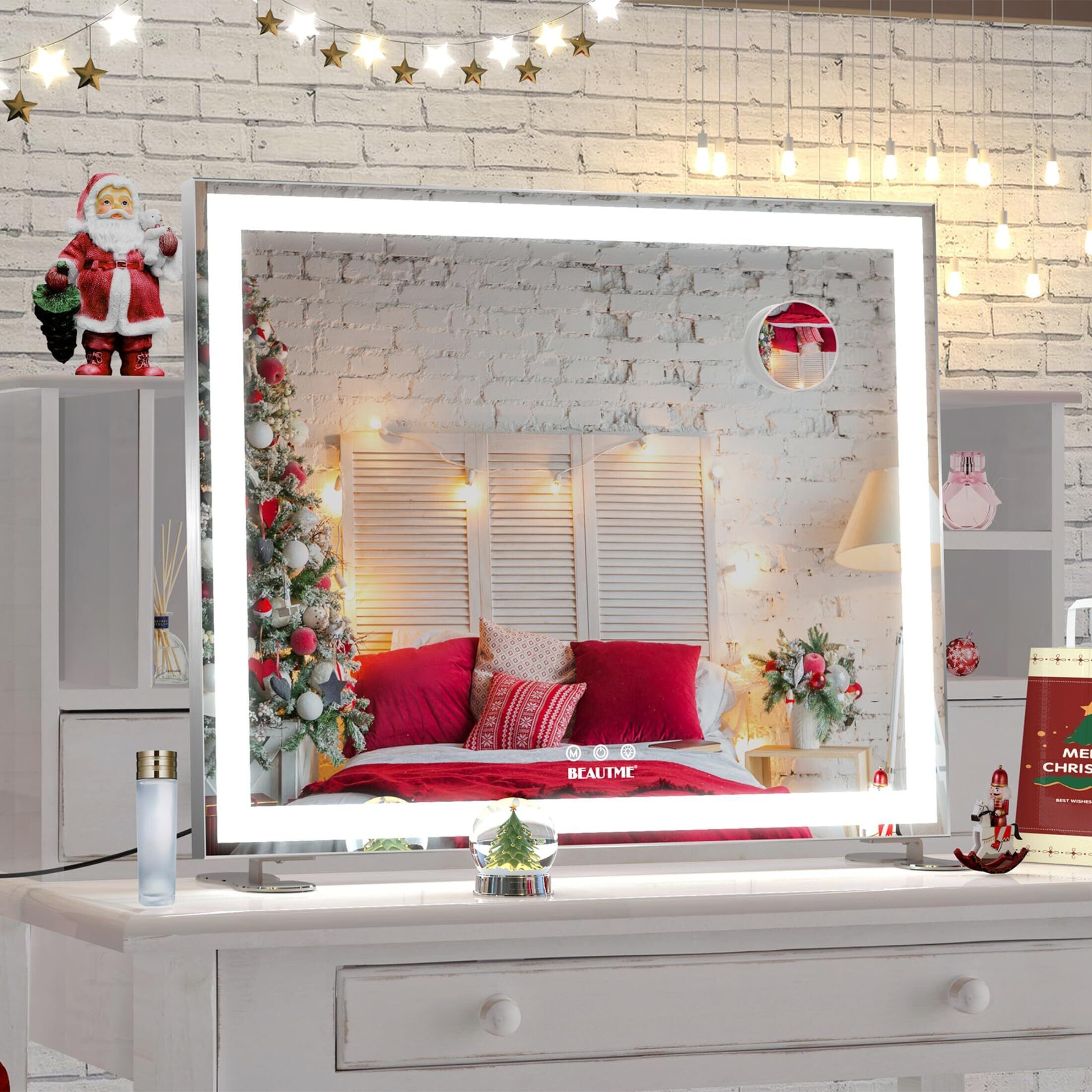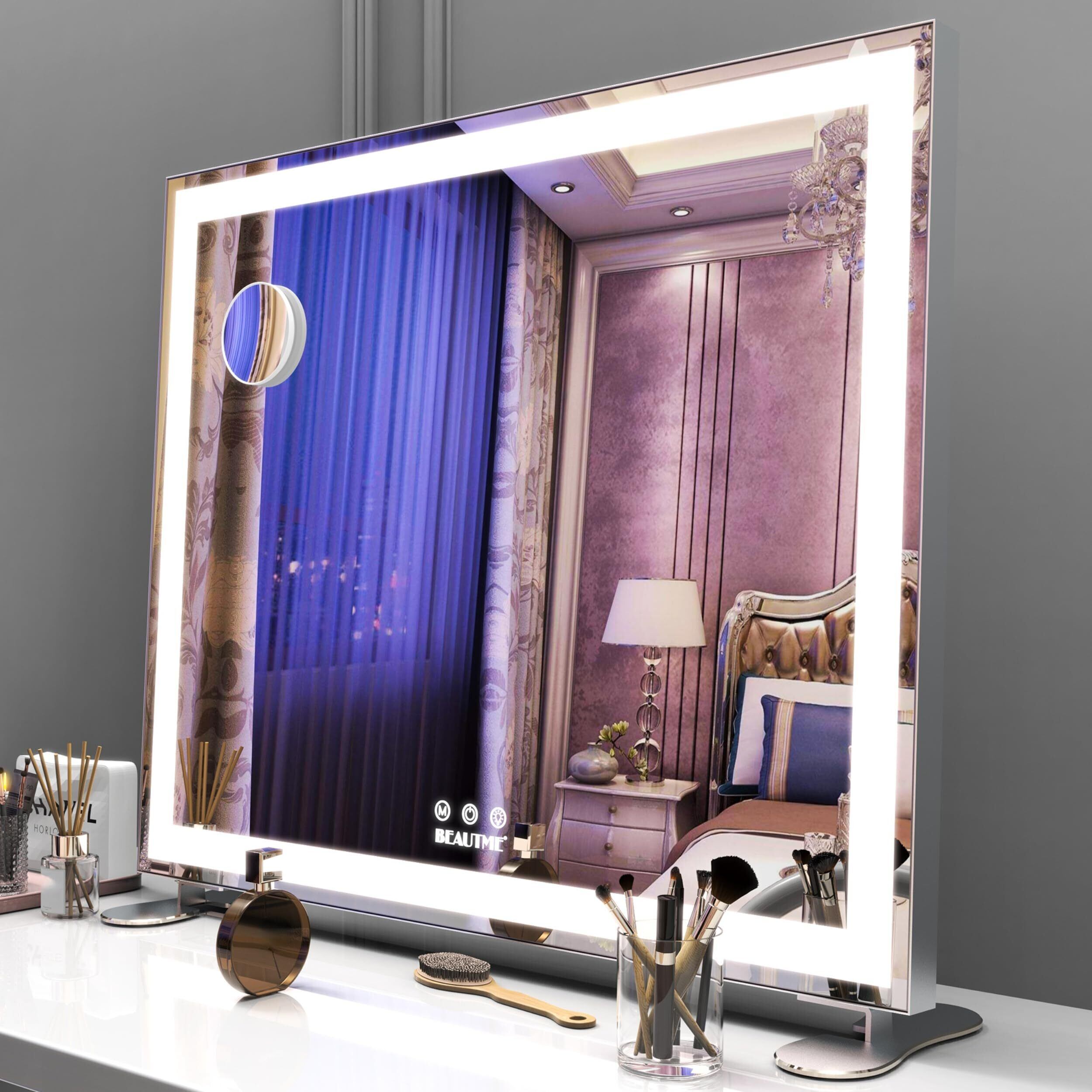 BEAUTME化粧鏡 女優ミラー大きい 照明付きミラー 壁掛け/卓上両用 明るさ調節可能 10倍拡大鏡 銀色 (600×507×150mm)
