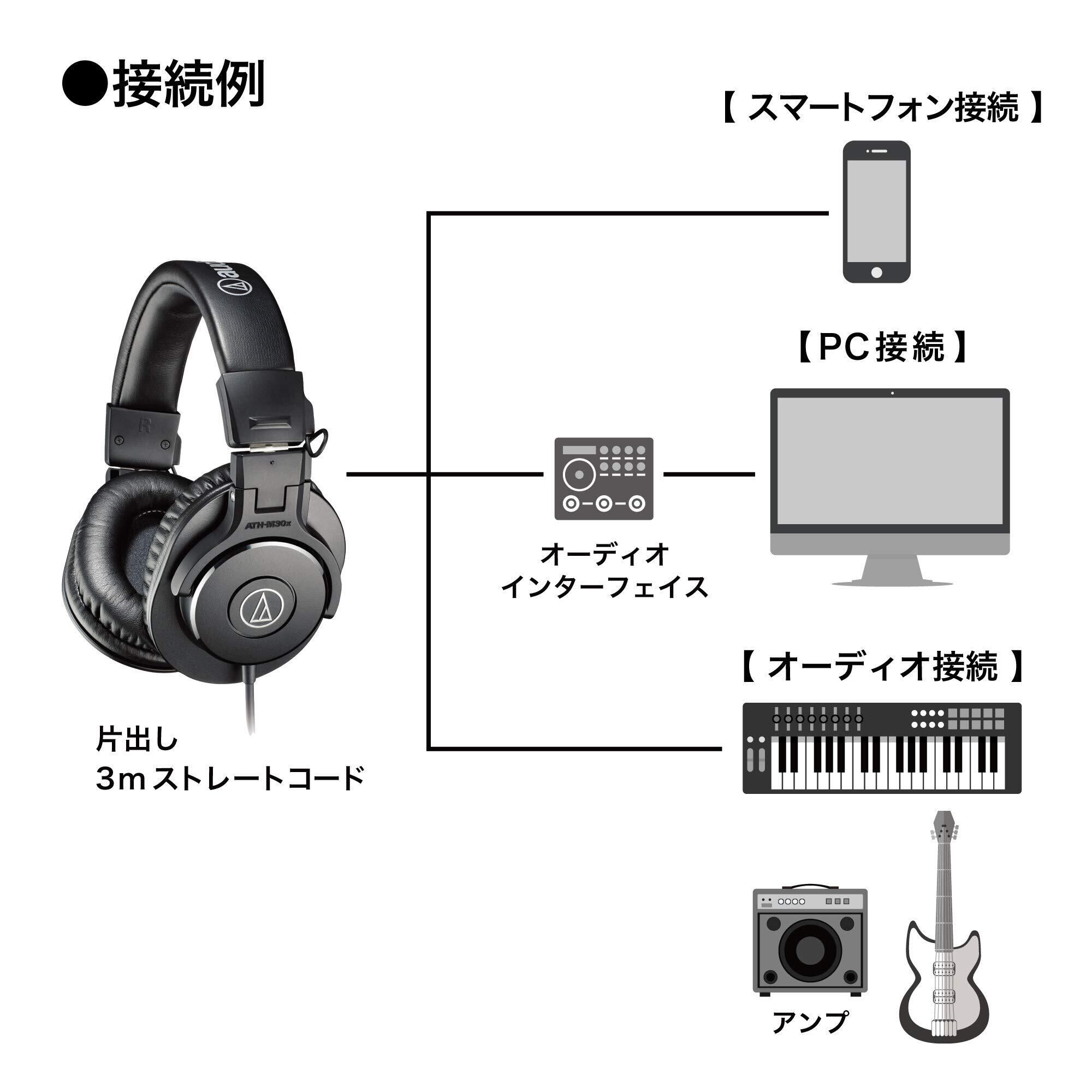 オーディオテクニカ ATH-M30x プロフェッショナル モニターヘッドホン 有線 【モニター/ミキシング/密閉型/折り畳み式/ケーブル長3.0m/国内正規品】ブラック