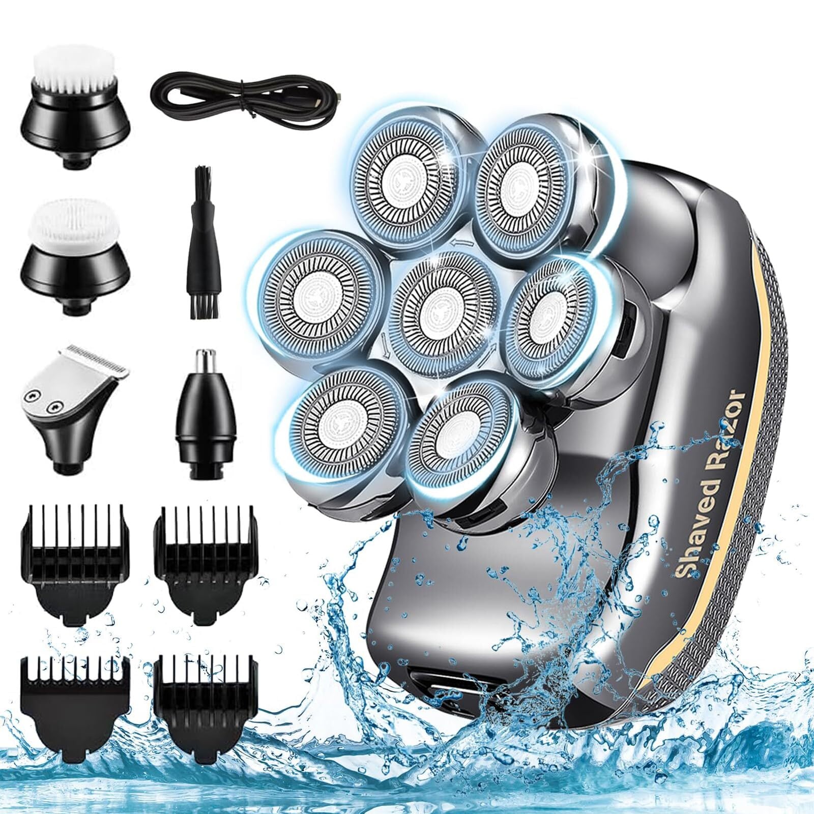 【新着商品】スキンヘッド用シェーバー スキンヘッド シェーバー メンズ 髭剃り 電動シェーバー メンズシェーバー 5in1 電気シェーバー 男性用 IPX7防水 乾湿両用 回転 ひげそり 電動 鼻毛カッター 男性用 ヘア 顔/頭剃り 散髪 洗顔プラシ 水洗い可 Type-C充電式 LEDディスプレイ 父や夫への贈り物 ギフト ギフトセット (銀)