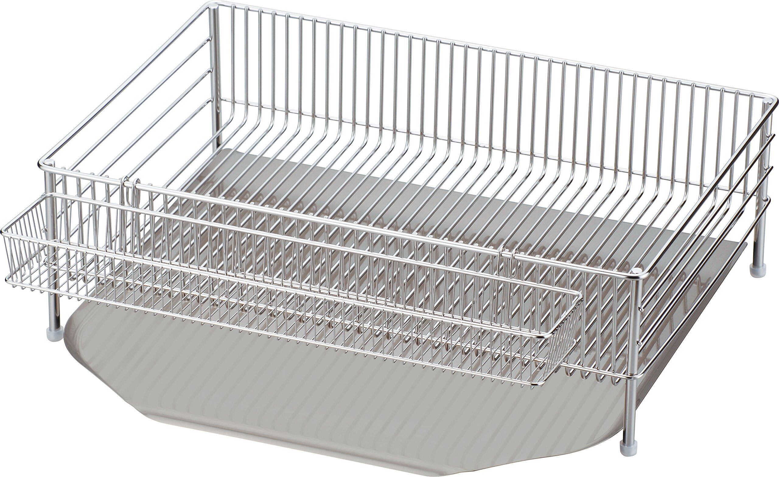 底に溶接部分がないので、汚れがたまらず、清潔を保ちやすい形状です。かごは深さを追求する事によって、食器の出し入れがしやすくなりました。底はワイヤーが縦にまっすぐ通っているだけのシンプルなデザインでせ。ワイヤーのピッチが細かく、フラットなので皿も立てやすく、グラス等を置いた時の安定感に優れます。
