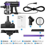 【パッケージ内容】本体*1、伸縮パイプ*1、フロアヘッド*1、すき間ノズル*1、ブラシ付きノズル*1、壁掛けブラケット*1、日本語取扱説明書*1。もし何かご問題がございましたら、「アカウントサービス」→「注文履歴」→「販売元」→「質問する」でお気軽にお問合せください。