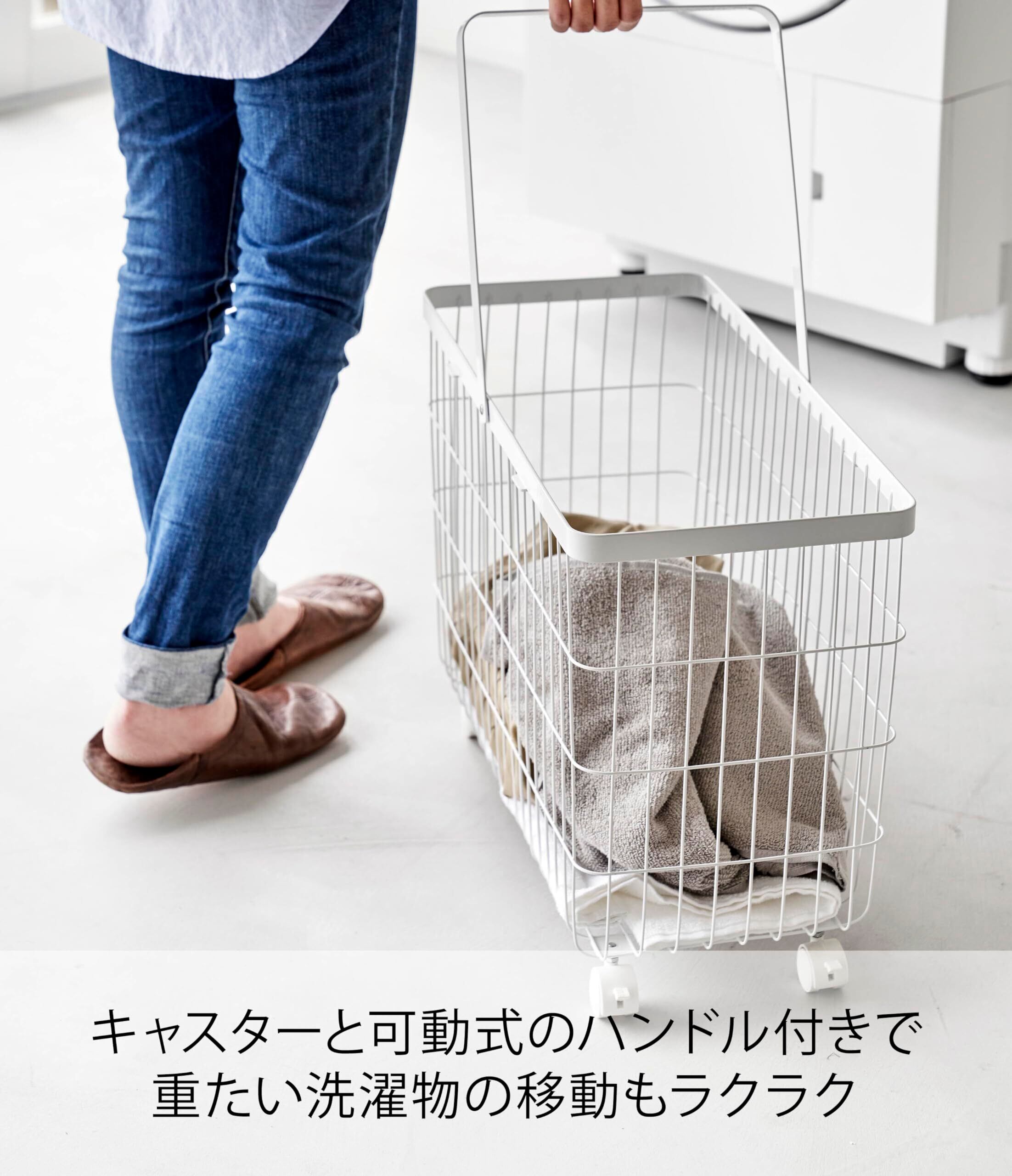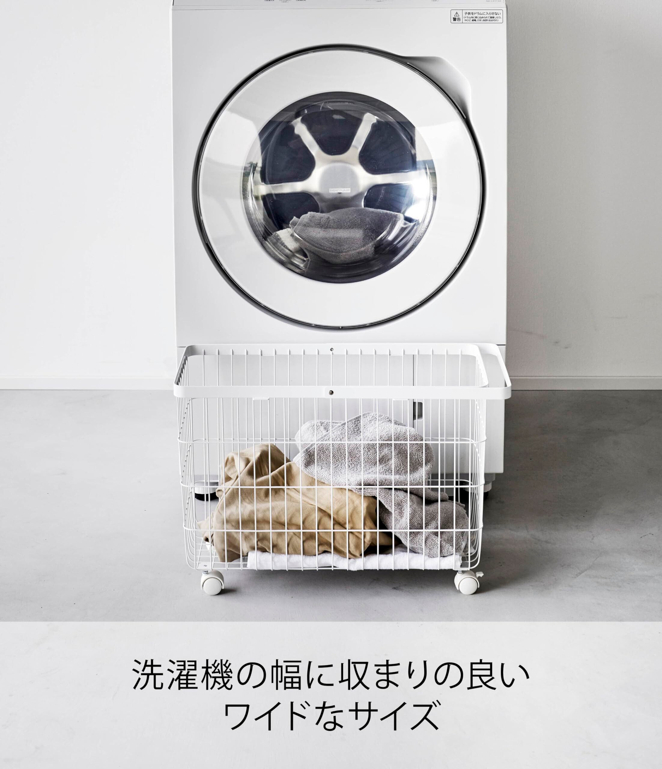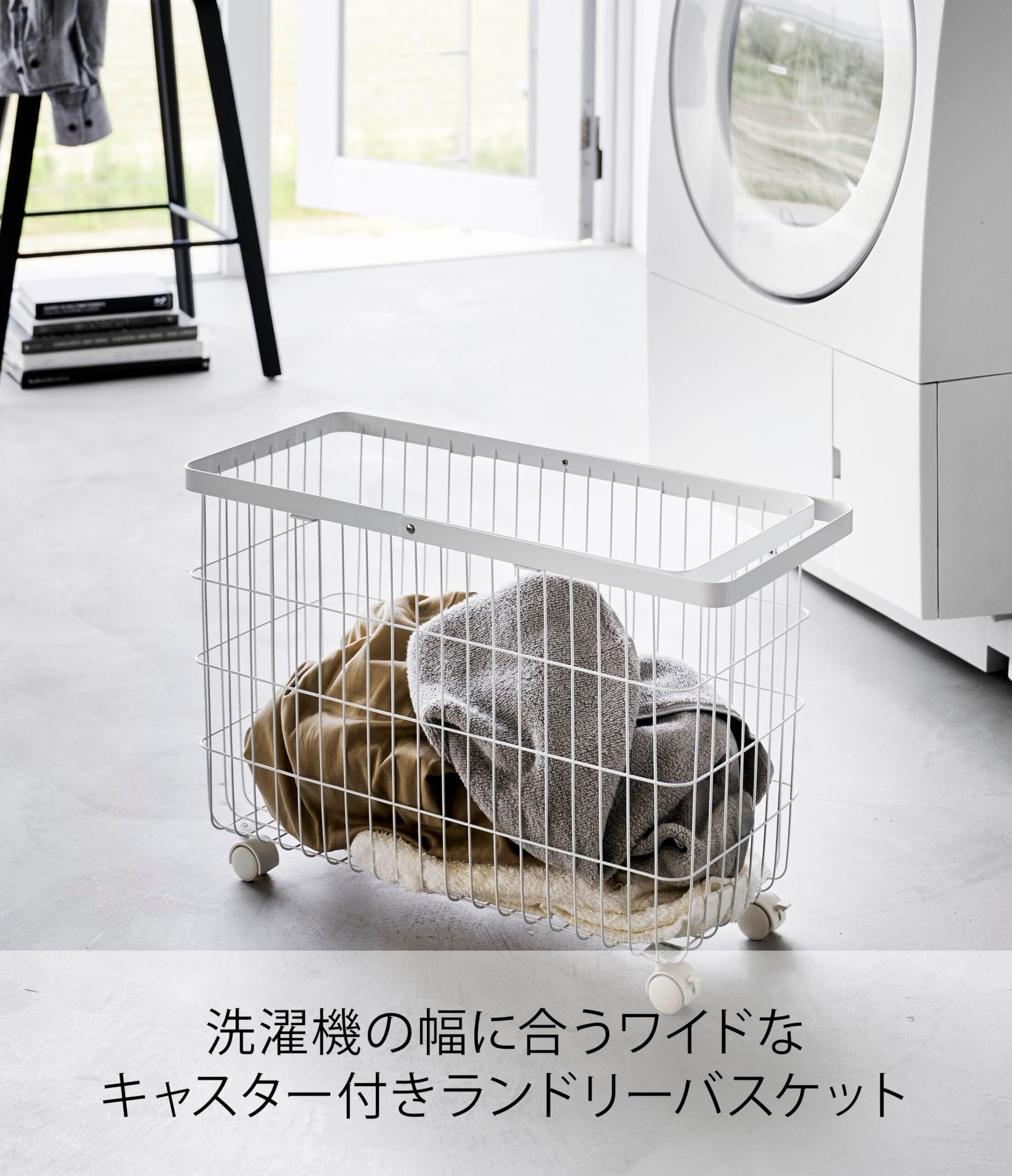 【新着商品】山崎実業(Yamazaki) ランドリーバスケット キャスター付き ワイド & ロー ホワイト 約W54.5×D25×H37.5cm(ハンドル使用時:約H65.5cm) タワー tower 出し入れスムーズ 高さが丁度いい 洗濯かご 6627 | ニコニコSHOP