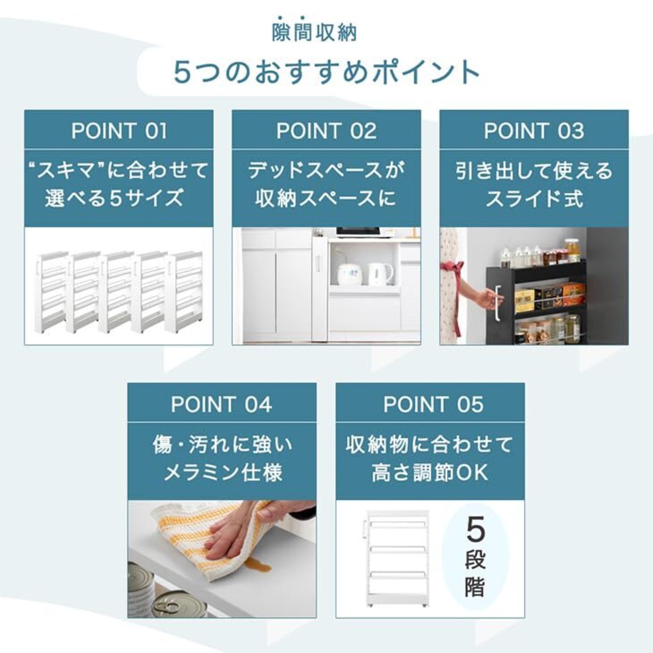・ご自宅の隙間に合わせて選べる5サイズ