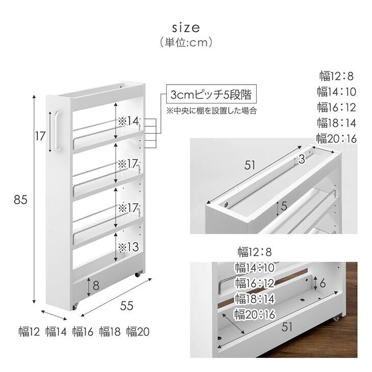 【サイズ】外寸:幅14×奥行55×高さ85cm【素材】表面材:メラミン化粧繊維板 取っ手:アルミ