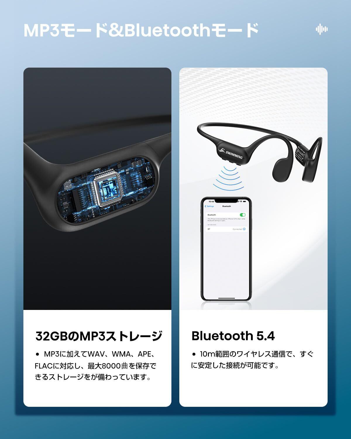 【数量限定】骨伝導イヤホン bluetooth 5.4 水泳 IP68完全防水 32GBメモリ内蔵 最大8000曲 こつでんどう イヤフォン ブルートゥース プール マイク付きワイヤレスヘッドホン 8時間連続再生/通話 水泳キャップ/ゴーグル/ヘルメット対応 ランニング サイクリング スポーツヘッドフォン ブラック
