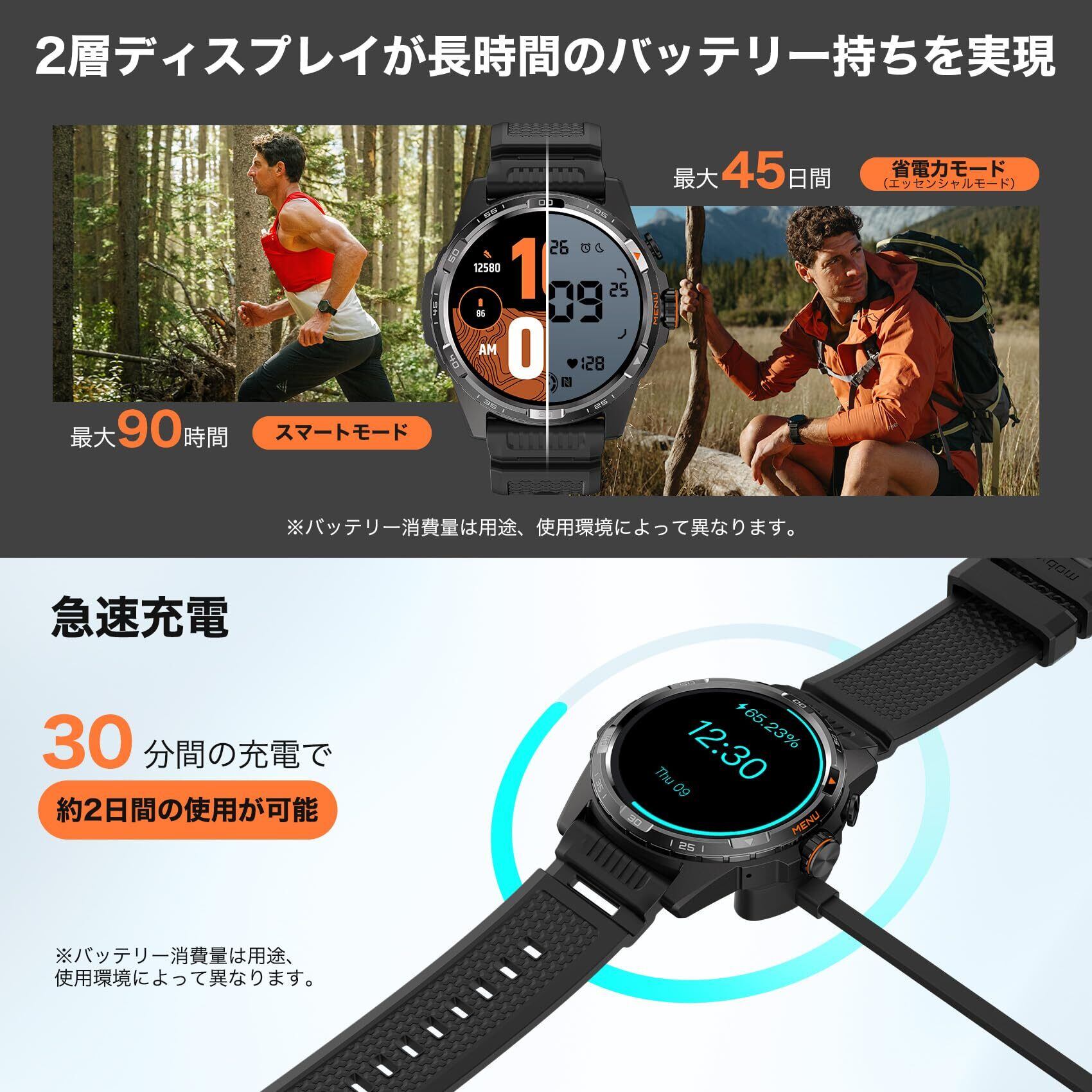 【アップグレードした設計】:ブランド史上最高の堅牢性を備えたスマートウォッチです。美しくサンドブラスト加工されたスチールと、高硬度のサファイアクリスタルディスプレイを採用し、あらゆる角度での耐久性と防塵、耐水、耐衝撃性を兼ね備えています。安心の2G RAM + 32G ROMメモリー。