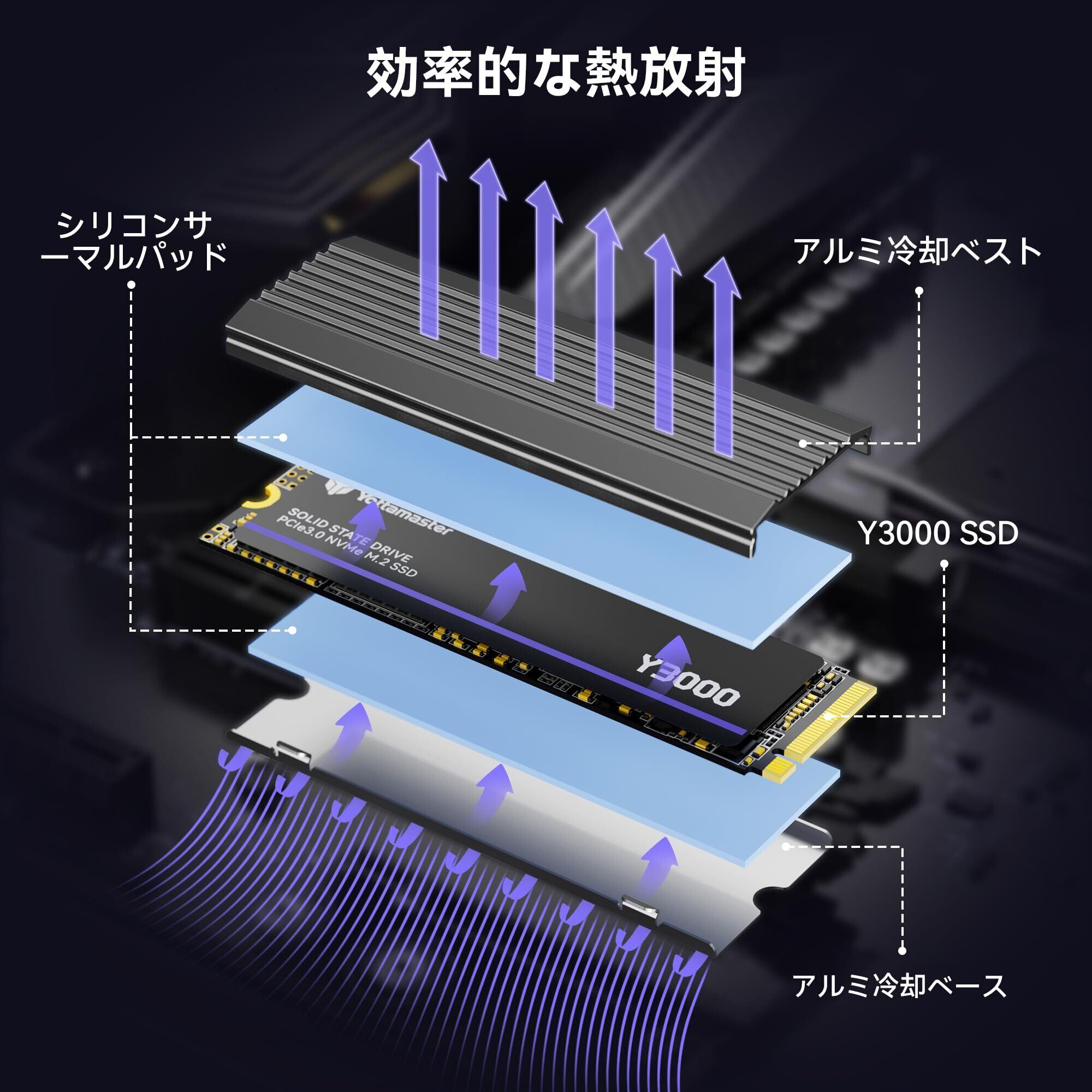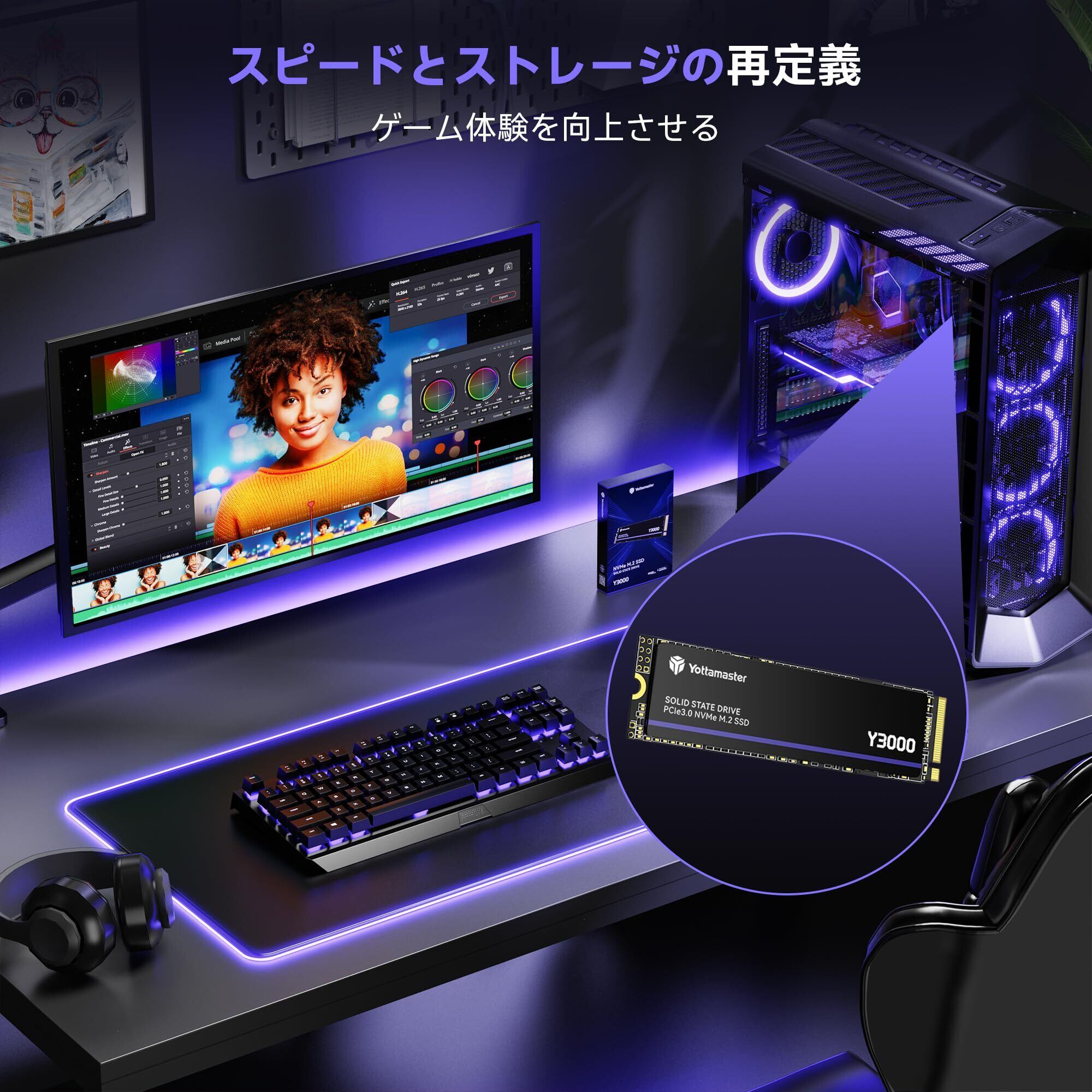 【特価商品】Yottamaster Y3000 1TB SSD M.2 PCIe 3.0、最大3100MB/s、M.2 2280 NVMe内蔵ソリッドステートドライブ(SLCキャッシュ3D NAND付き)、PCコンピューター、ノートパソコン、ゲーム用のストレージアップグレード