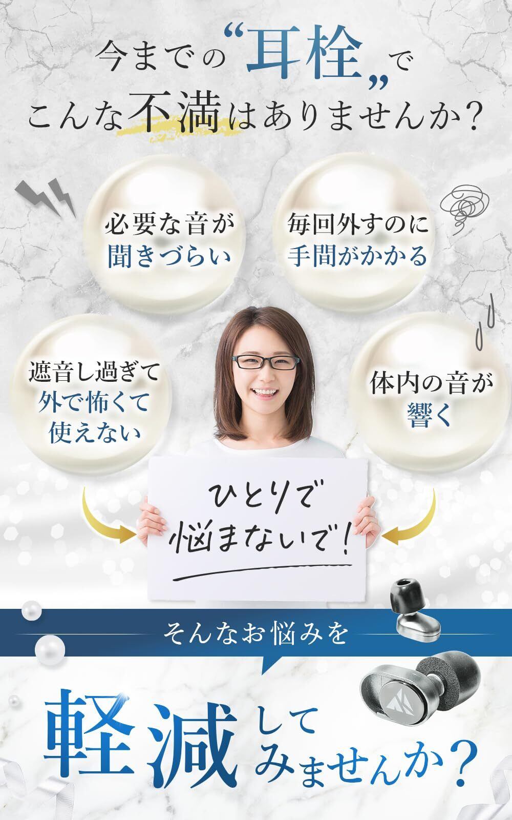 【心地よい使用感】完全遮断しない耳栓だから、内道を塞がずに必要な空気を取り入れているため閉塞感か少なくとても開放的な耳栓を実現しました。いままでの耳栓で閉塞感や籠もったような感覚が苦手な方でもご使用頂く価値がございます。