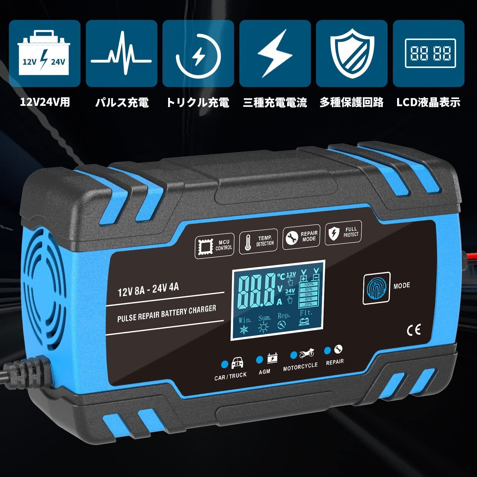 【在庫処分】AUTOWHD 12Vと24V用鉛蓄バッテリー充電器 全自動バッテリーチャージャー 修復充電機 パルス充電 1.5A/4A/8A充電電流 トリクル充電 3-150Ah用LCD表示 自動車&バイク&トラック等適用 日本語説明書 | ニコニコSHOP
