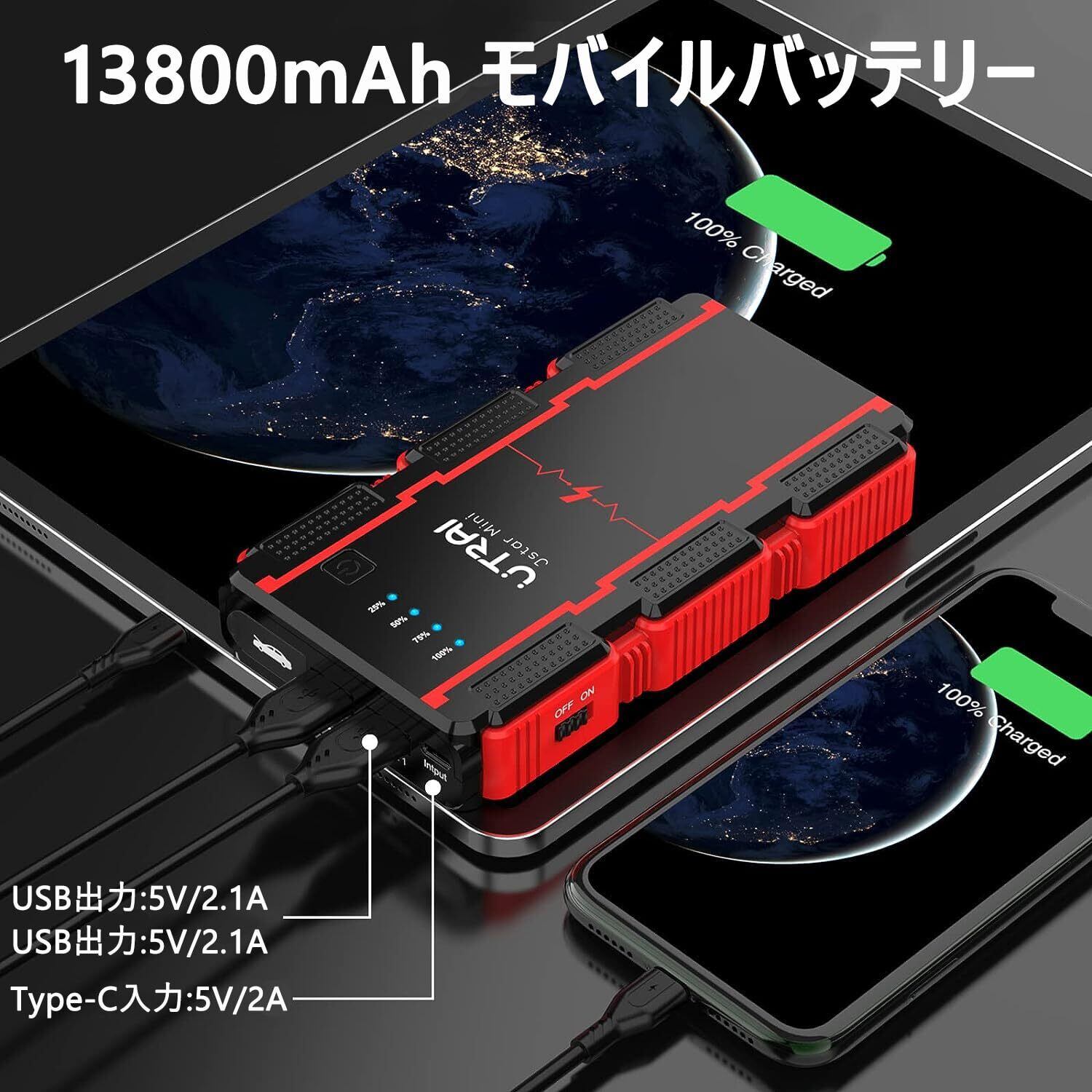 UTRAI ジャンプスターター 12V車用 瞬間最大出力2500A 7.5Lガソリンエンジン車 / 5.5Lディーゼル車対応 バッテリー ブースター スマートブースターケーブル モバイルバッテリー機能 LED緊急ライト 安全保護システム PSE承認済み (13800mAh)