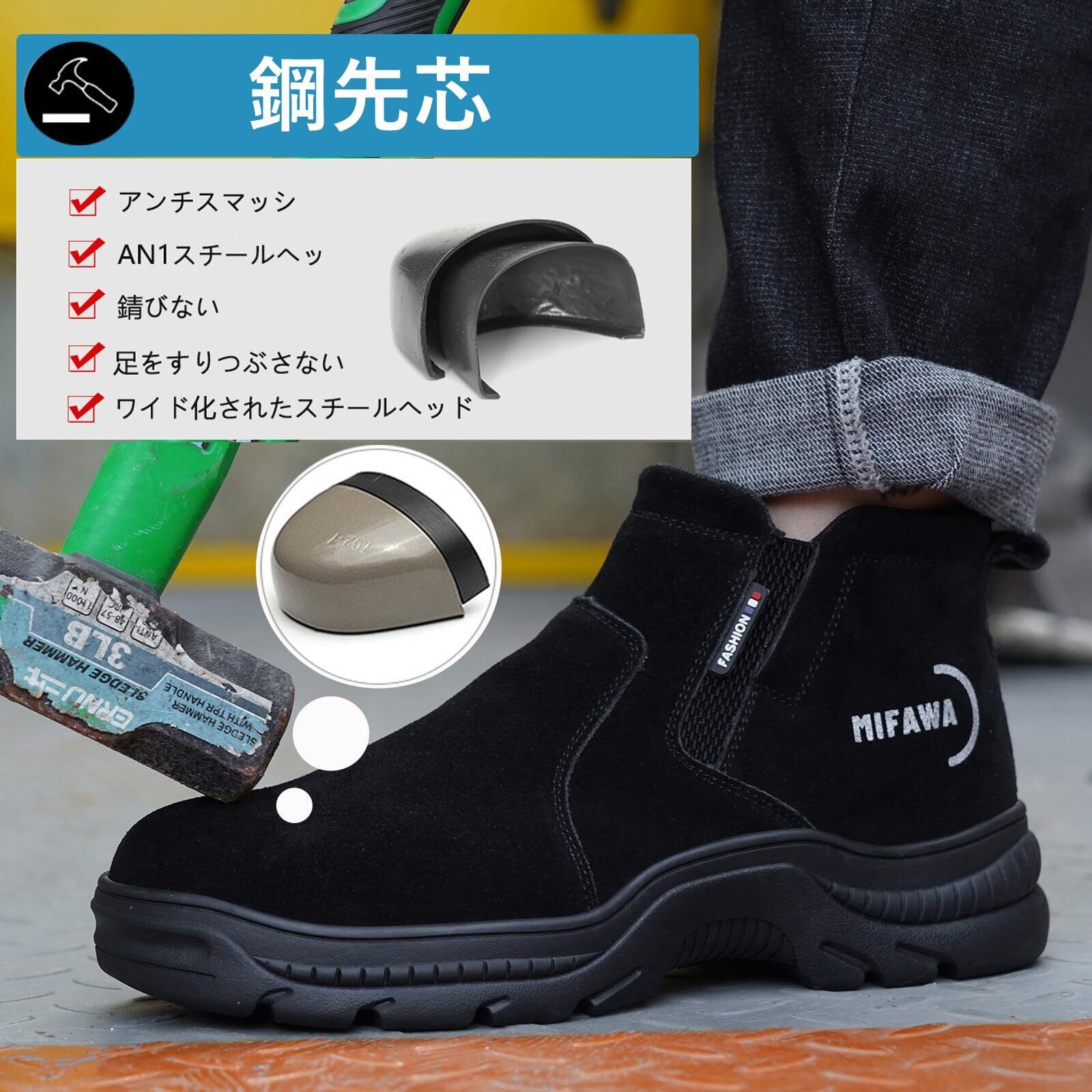 [LIZRHA] 安全靴 メンズ 作業靴 メンズ セーフティーシューズ 鋼先芯 あんぜん靴 メンズ 安全長靴 耐摩耗性 快適 屋外作業用靴 軽量 通気性 滑り止 つま先保護 24.5-28CM