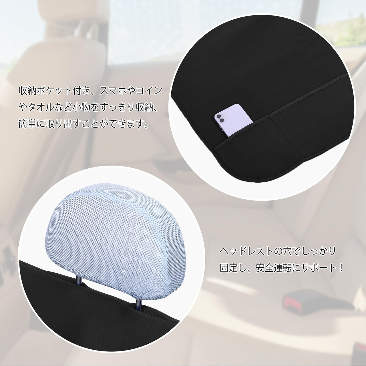 【適用車種】軽自動車、普通車、バンやセパレートシートやベンチシートなど幅広い車種に対応します。取り付け方法も被せるだけで簡単。ご購入する前に必ず適合シート形状、適合シート寸法をご確認下さい。ボンディング加工でにおいがすこしありますが、気になる方は開封後に、風通しの良い場所で陰干してから、お使いください。