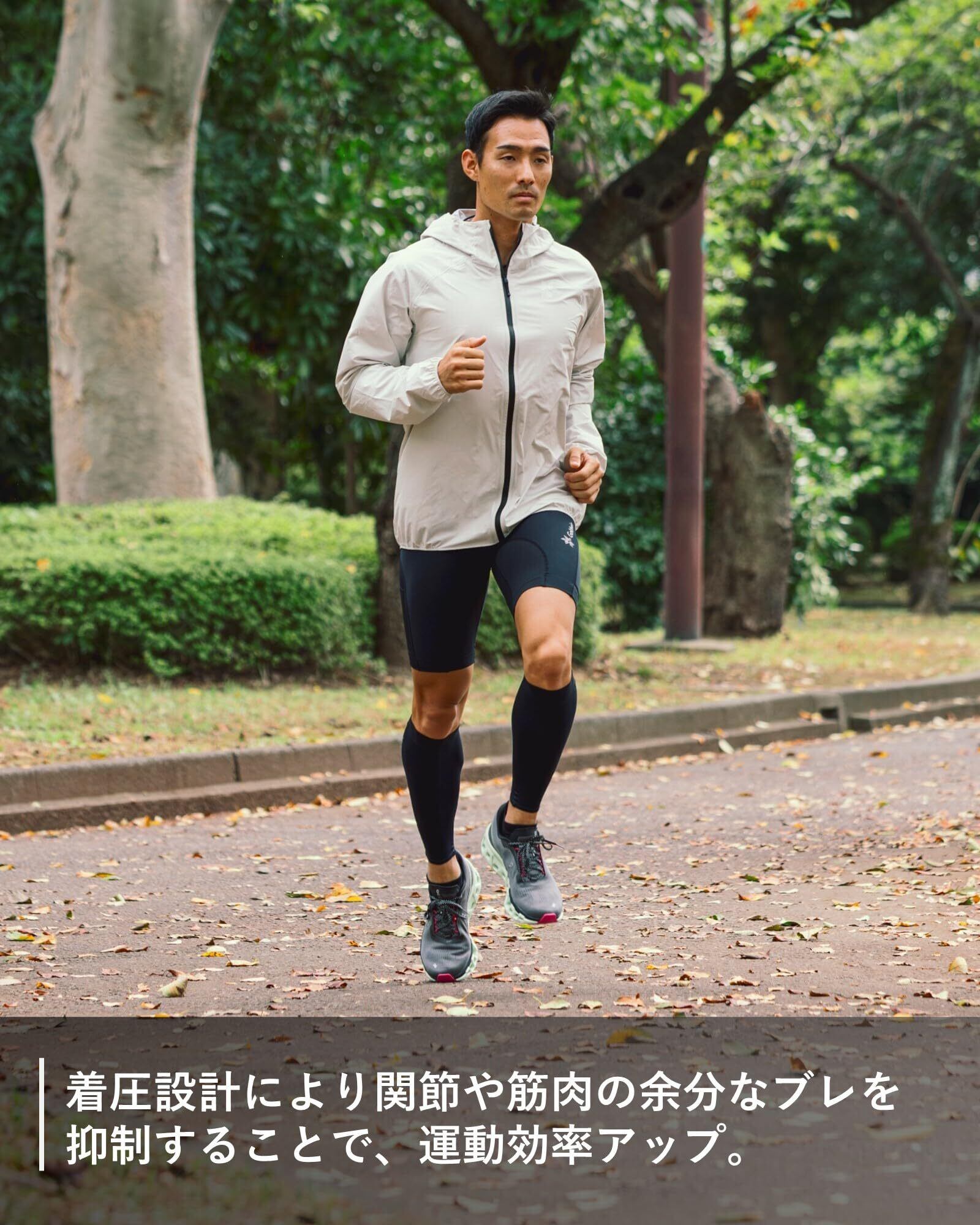 着圧設計により関節や筋肉の余分なブレを抑制することで、運動効率をアップ