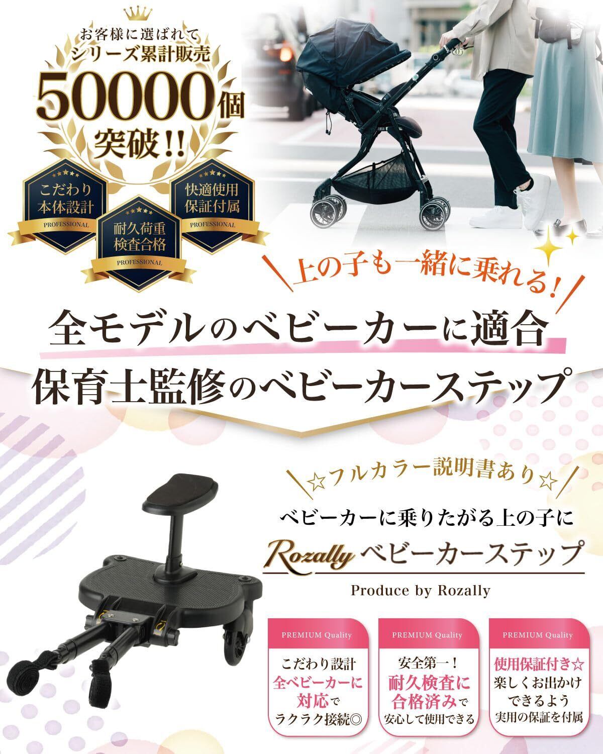 【保育士が監修】 Rozally ベビーカーステップ がついに正式販売開始。下の子 が生まれたから ベビーカー で お出かけ という時に 上の子 が自分もベビーカーに乗りたいと喧嘩になってしまった…という声から生まれた バギー ボード 型の 接続 ステップになります。サドル付き の ステップボード になっているので 上の子 も一緒に 座れる モデルになっています。企画&設計では【保育士】の先生からアドバイスをもらい、分かりやすい取扱説明書を添えて製品化しました。