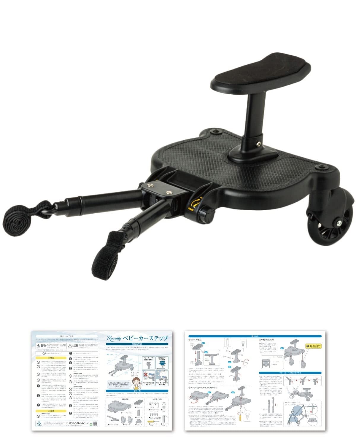 Rozally 【保育士が監修】 ベビーカーステップ バギー サドル付き 座れる ふたり乗り 二人乗りボード ブラック (旧モデル)