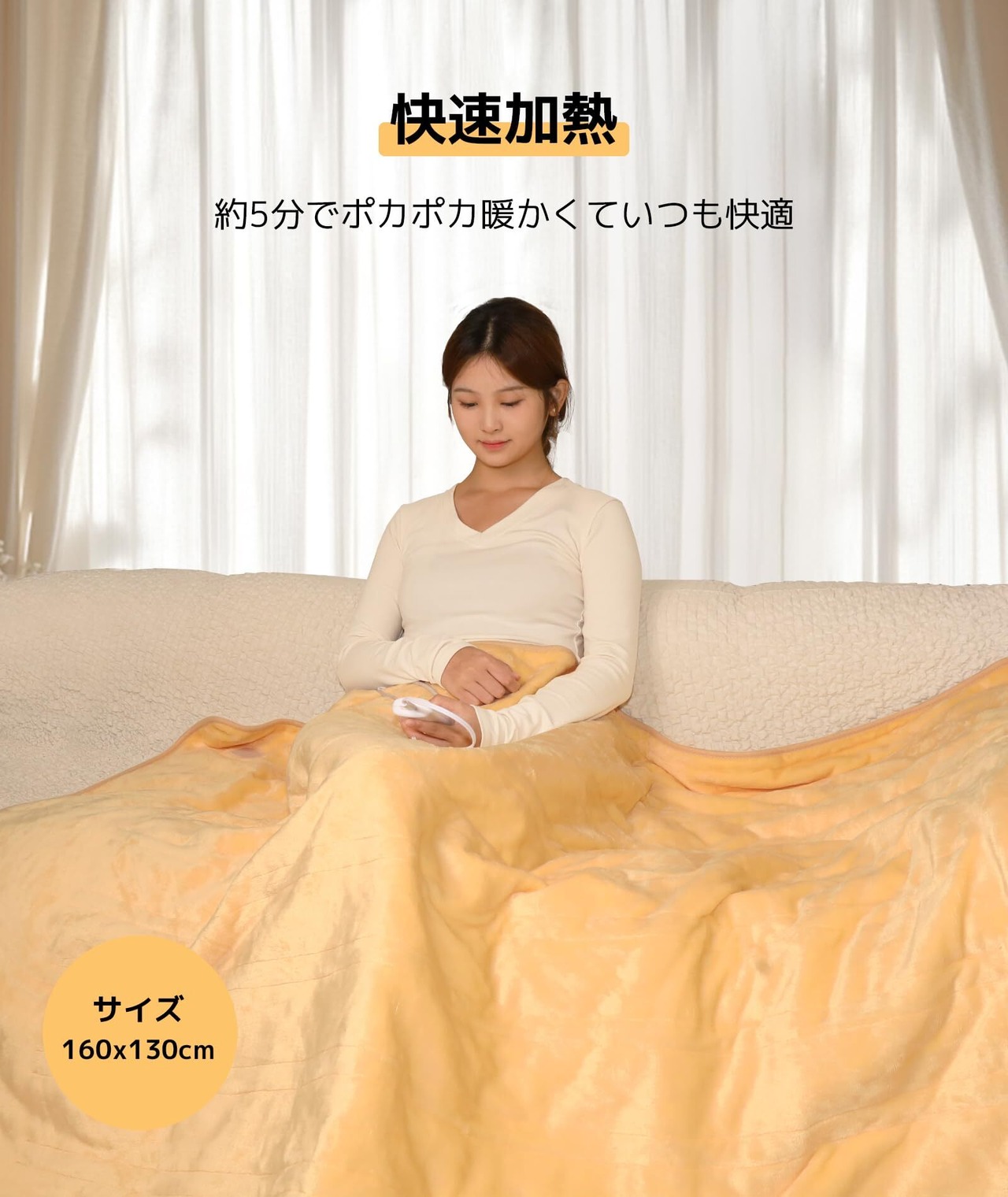 Ilake 電気毛布 敷き 160x130cm 掛け電気毛布 ふわふわ 水洗える タイマー付き 6段階温度調節 過熱保護 防寒対策 節電 省エネ ダニ退治 暖房器具 電気ブランケット(ベージュ)