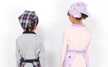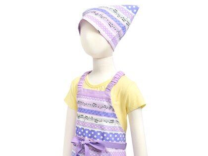 【在庫セール】COLORFUL CANDY STYLE 子供用 キッズエプロン 女の子 三角巾 セット 小学生 着脱簡単 100-120 奏でるメロディー弾ける水玉リズム(ラベンダー) N1235740 | ニコニコSHOP