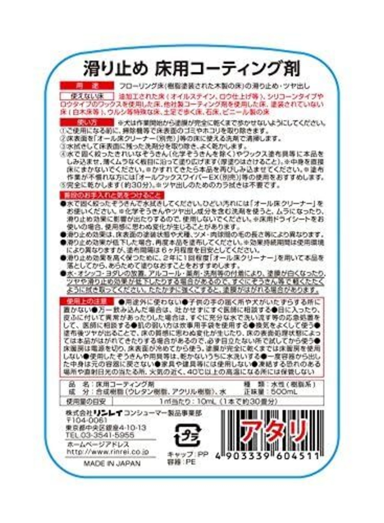 リンレイ 滑り止め 床用コーティング剤 500ml