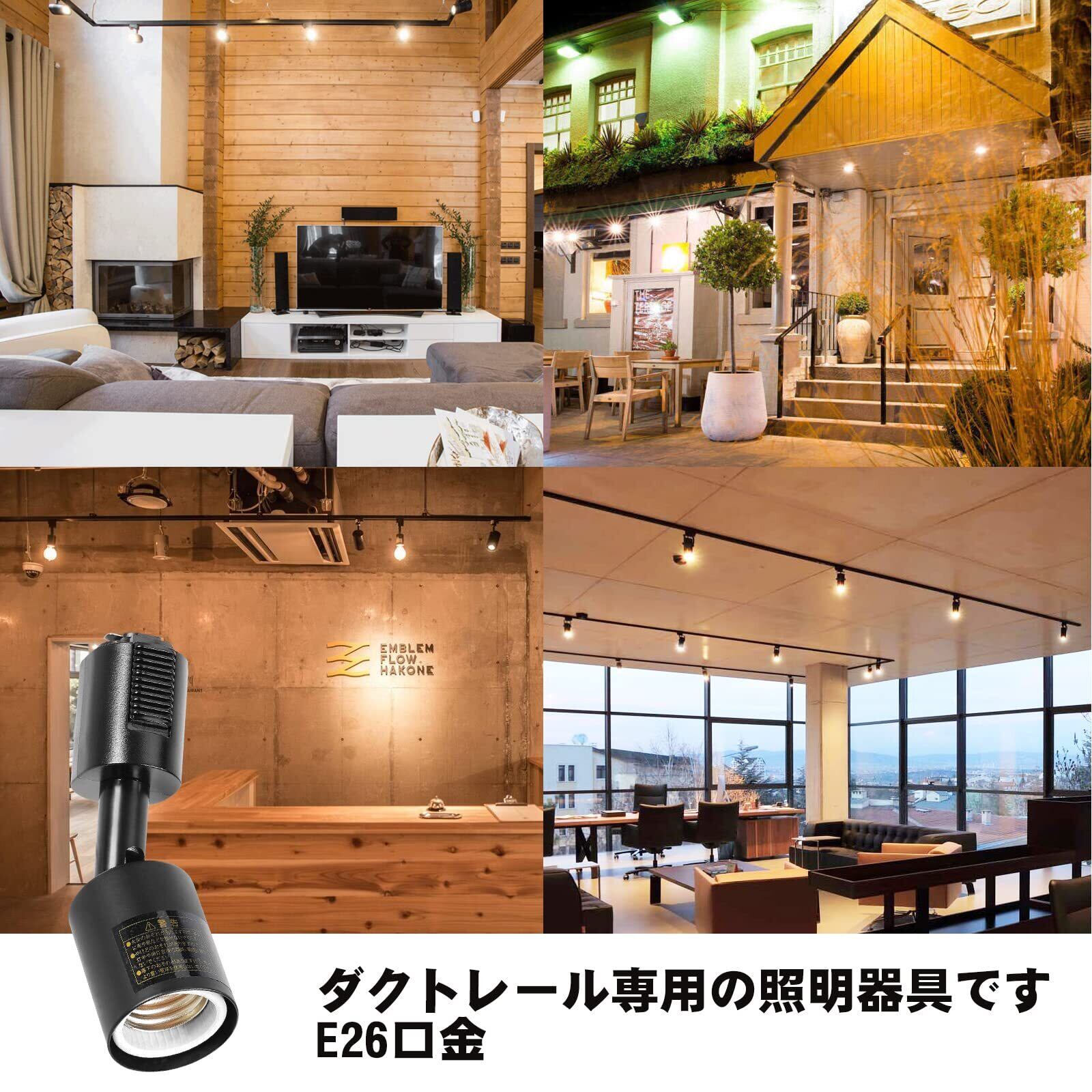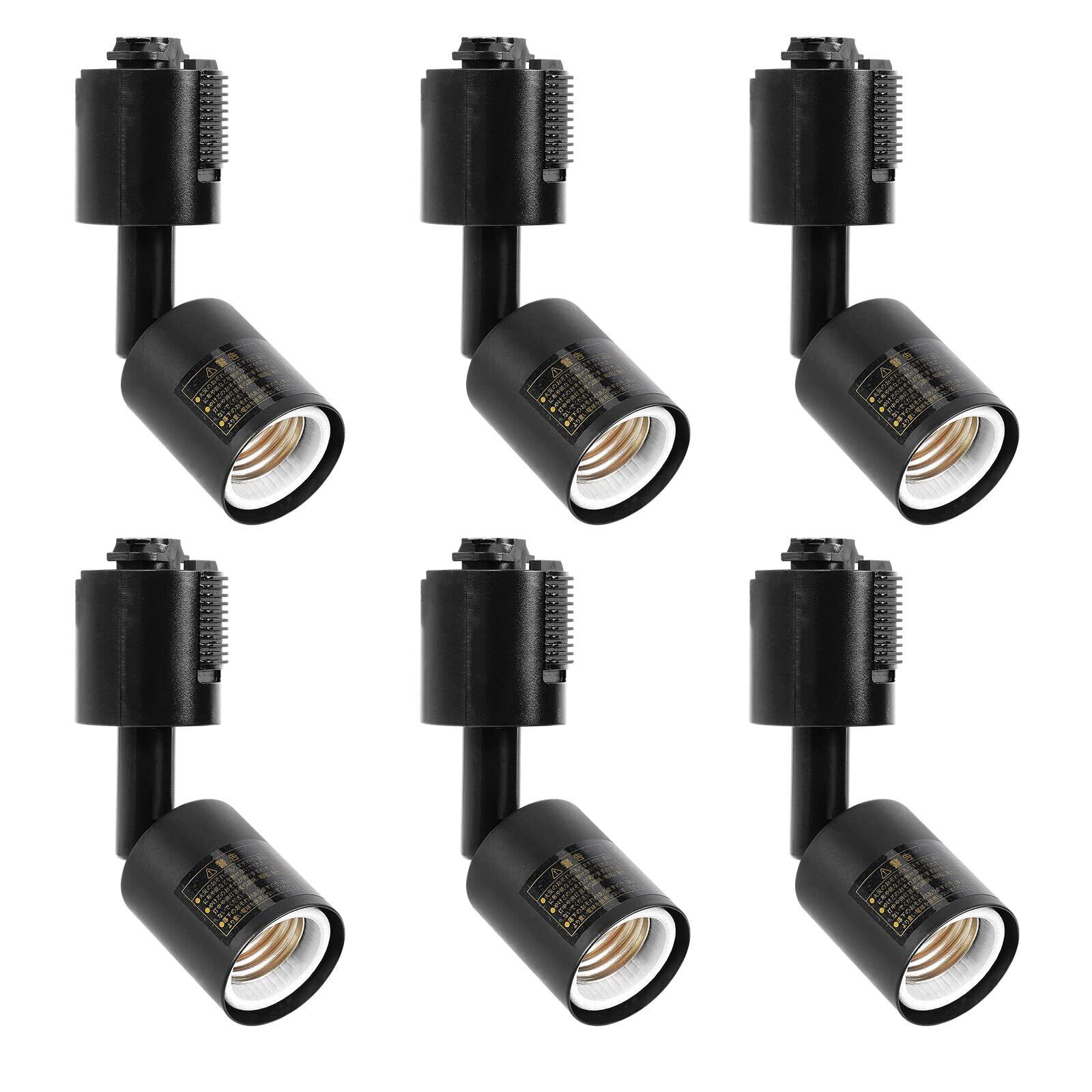 Pispoer ダクトレール用ライト、E26口金、電球なし、ライティングレール 照明、配線ダクトレール用器具、LEDスポットライト、照射角度調節可能、黒い、6個セット。