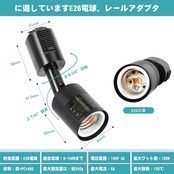 1.ダクトレール専用の照明となります。重量:約148g 口金:E26、カラー:ブラック、定格電圧:AC100V、使用可能LED電球:150W以内 ※電球は付属しておりません。