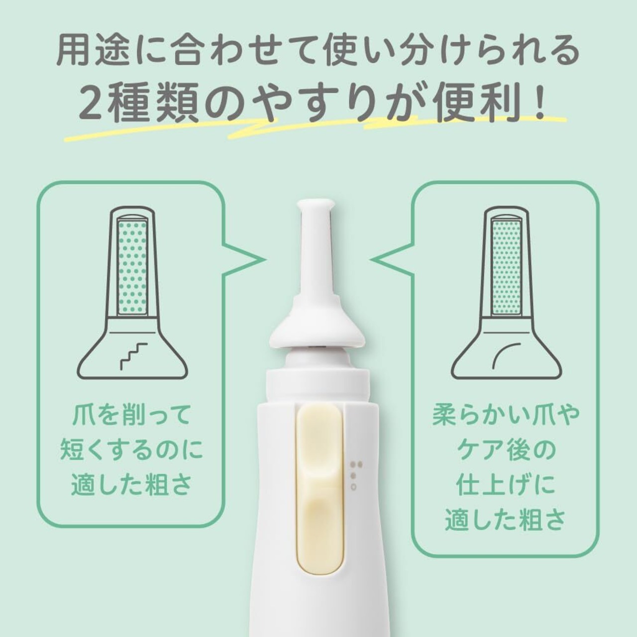 ・コンパクトヘッドだから、赤ちゃんの小さな爪の1本1本を確認しながら、削りすぎることなくケアできます。