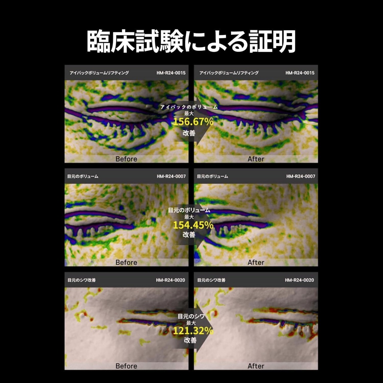 目の下のデリケートな肌を引き締めることで、ハリのあるリフトアップした印象を与えます。