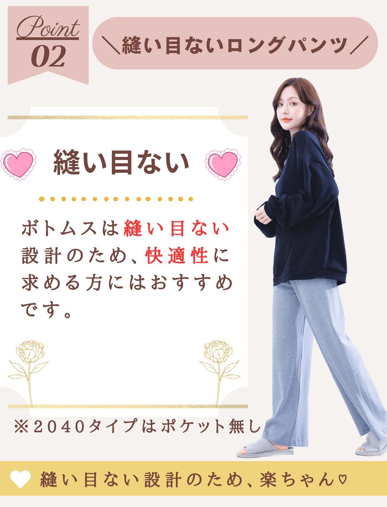 ボトムスは両サイドにポケット付きで、スマホや小物が入れられるため、便利です。【ご注意】2040タイプは縫い目ない設計のため、ポケット無しです。縫い目ないため、快適性に求める方にはおすすめです