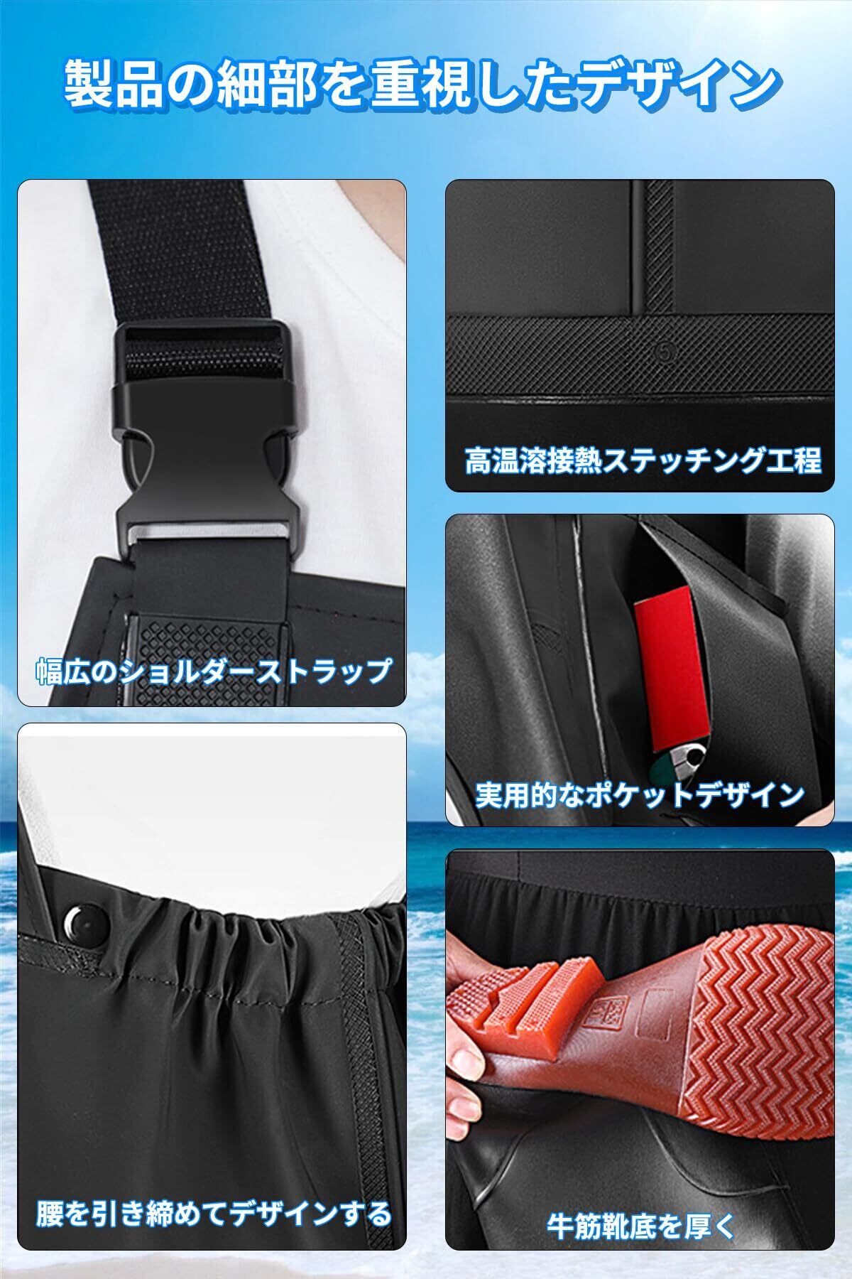 ユニバーサルな用途: 伸縮性のある肩紐でフィット感を調節可能。サーフィン、川釣り、農作業、漁業、除雪、洗車など様々なシーンで活躍。釣り道具を収納できる収納袋付き伸縮性素材の肩ベルトは、快適なフィット感を提供し、さまざまな体型に対応します。