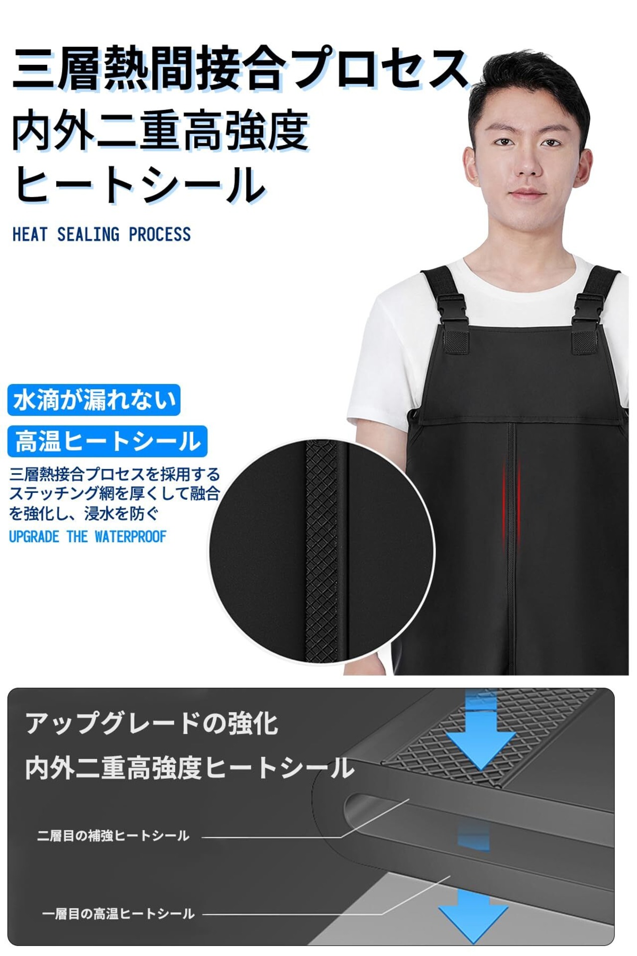 高機能素材:このウェーダーは、PVC素材を採用し、内側には通気性のある編み地を使用しています。防水性、透湿性に優れるだけでなく、耐水性、防油性、耐酸アルカリ性も備えています。
