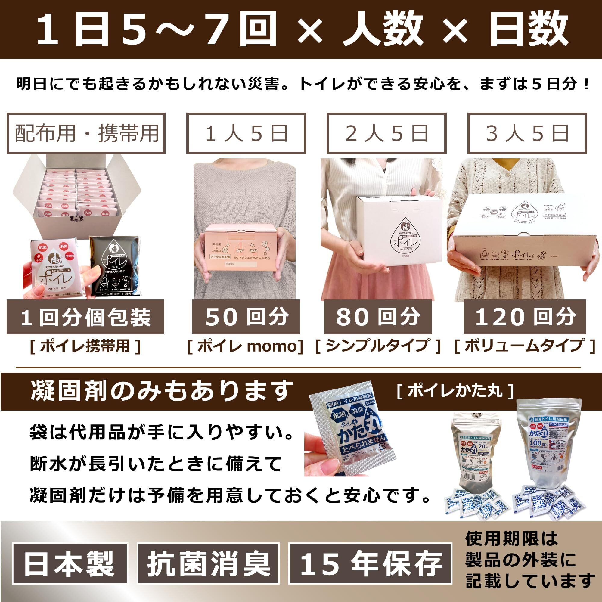 ポイレ シンプルタイプ 80回分 簡易トイレ 携帯トイレ 日本製 15年保存 抗菌 消臭 凝固剤 排便袋 災害トイレ 防災 防災士監修