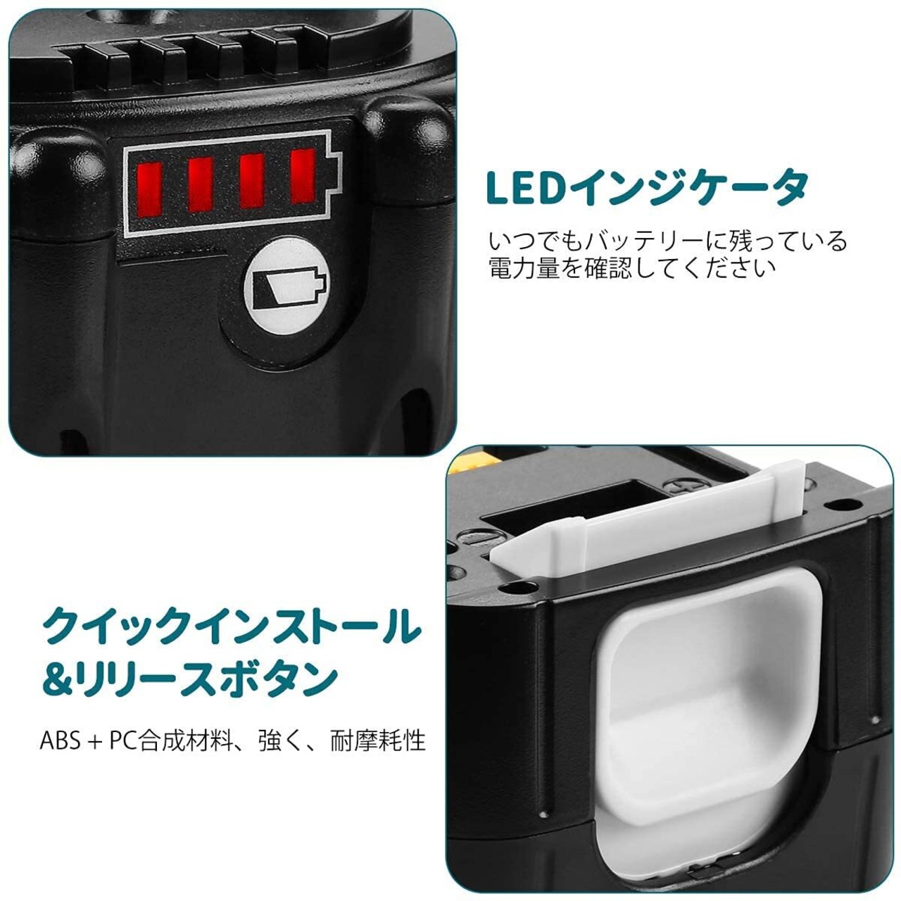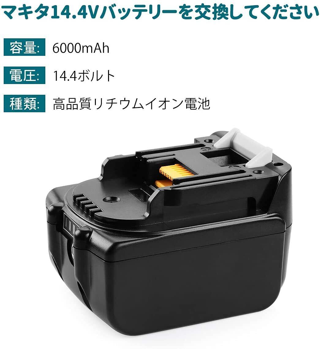 商品の仕様:型番:マキタBL1460バッテリー互換 電圧:14.4V 容量:6.0Ah(6000mAh) ワット数:86.4W 種類:リチウムイオン電池