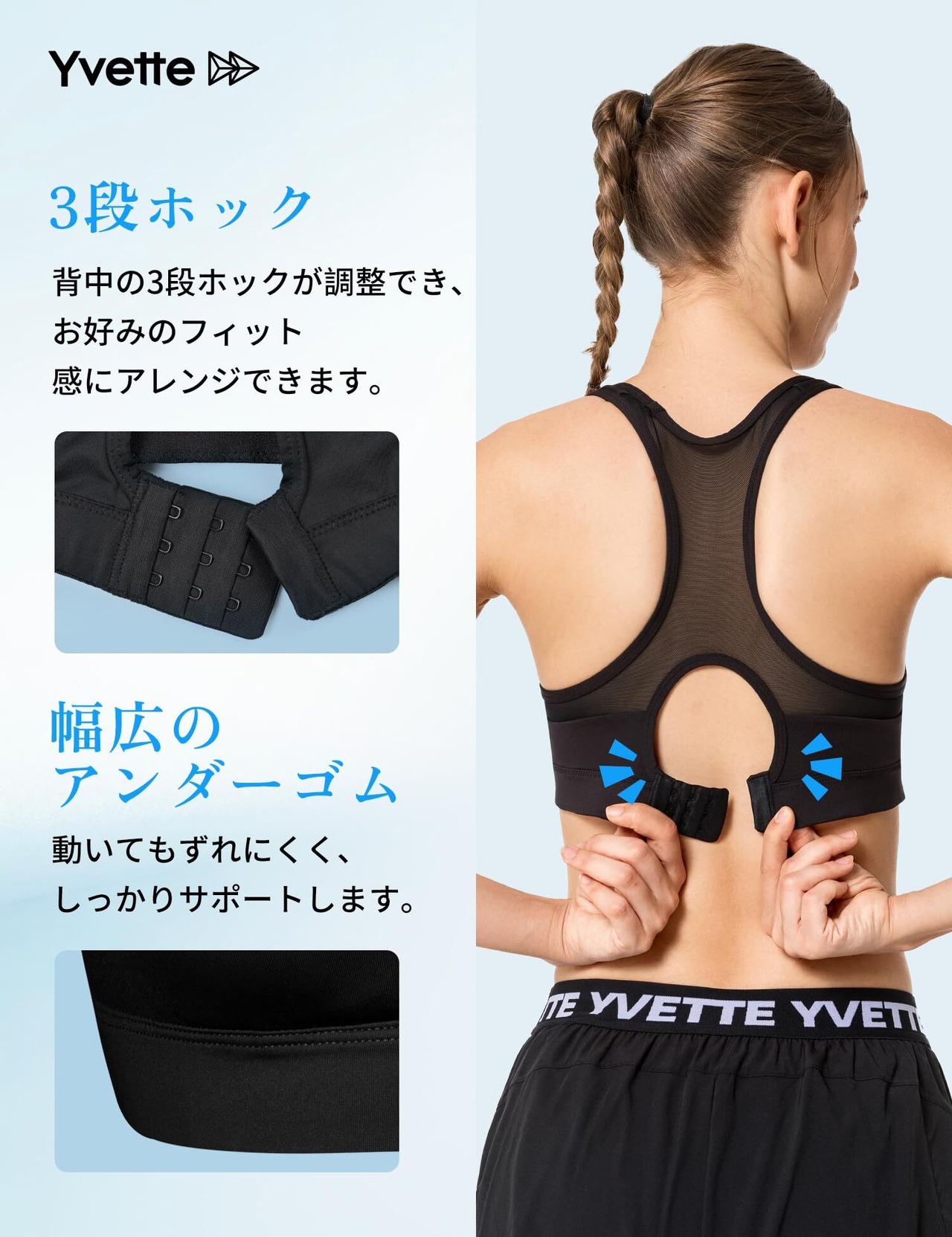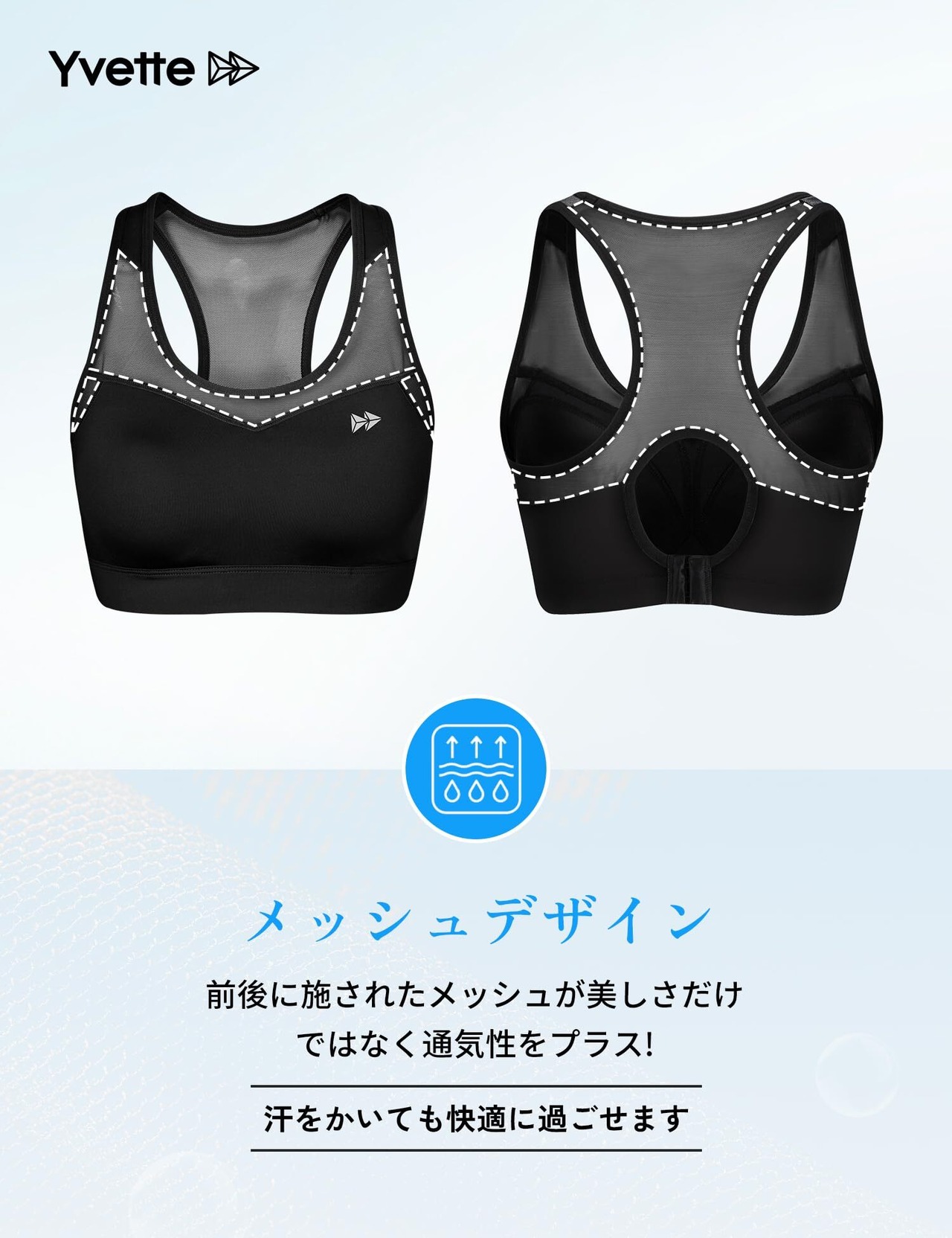 イベット スポーツブラ 揺れない ハイサポート 後ろホックタイプ メッシュ素材 内蔵成型カップ レディース 吸汗速乾
