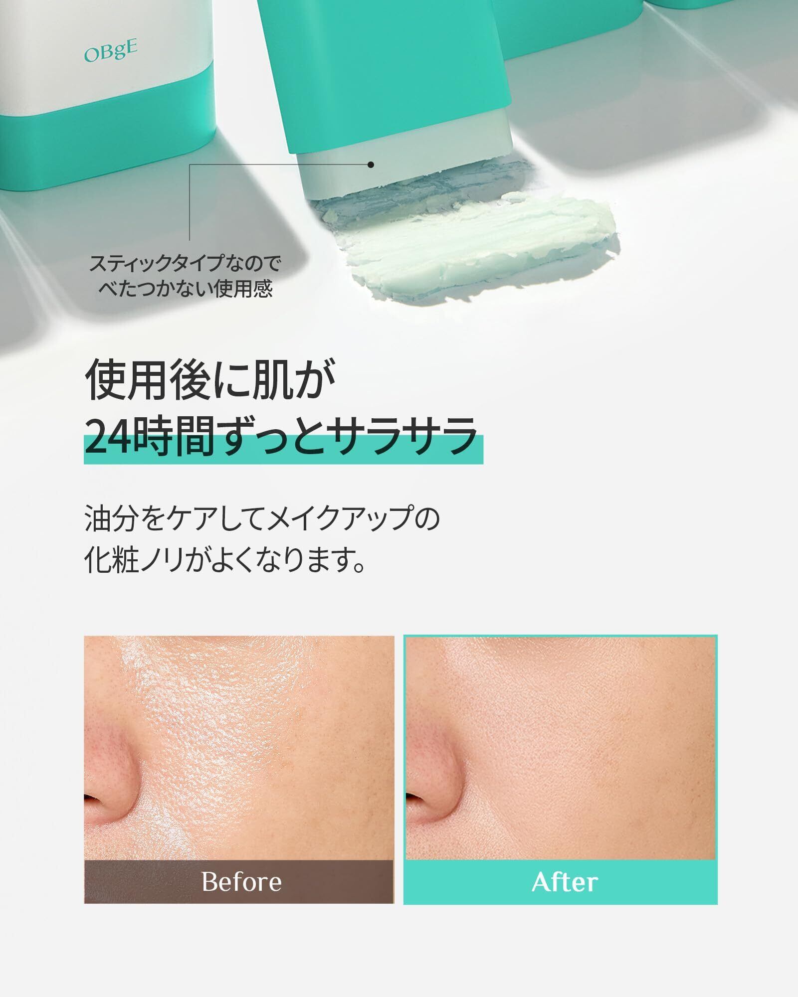 [NEWリニューアル]OBgE(オブジェ)【日焼け止め 化粧下地】毛穴ゼロオイルコントロールサンスティック UVカット 紫外線 べたつかなく サラサラ 化粧ノリ 透明感 低刺激 顔 全身用 敏感肌 脂性肌 皮脂テカリ崩れ防止 毛穴カバー SPF50+ PA++++