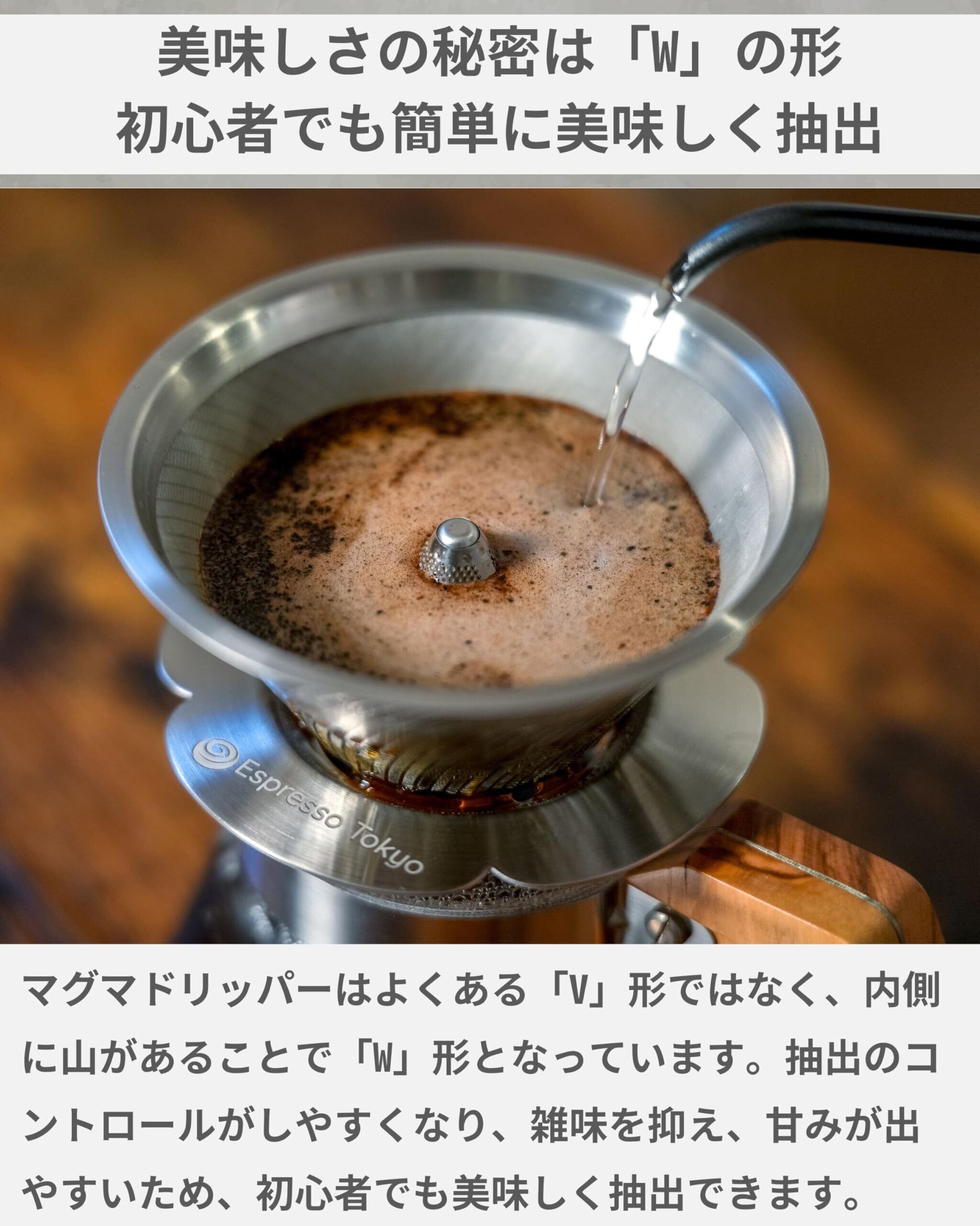 Espresso Tokyo マグマドリッパー コーヒードリッパー ステンレス製 誰もがトップバリスタの味を再現できるW形 1〜3杯用 MagMa Dripper