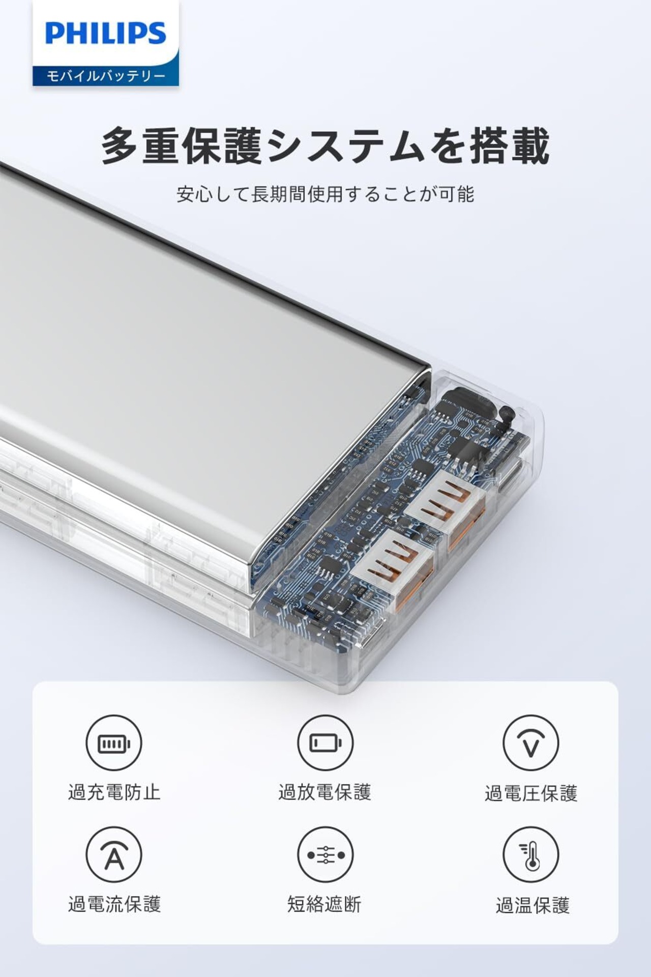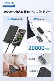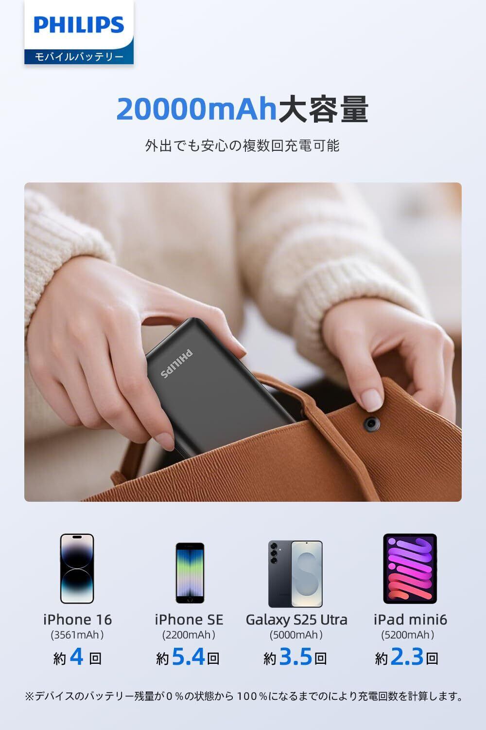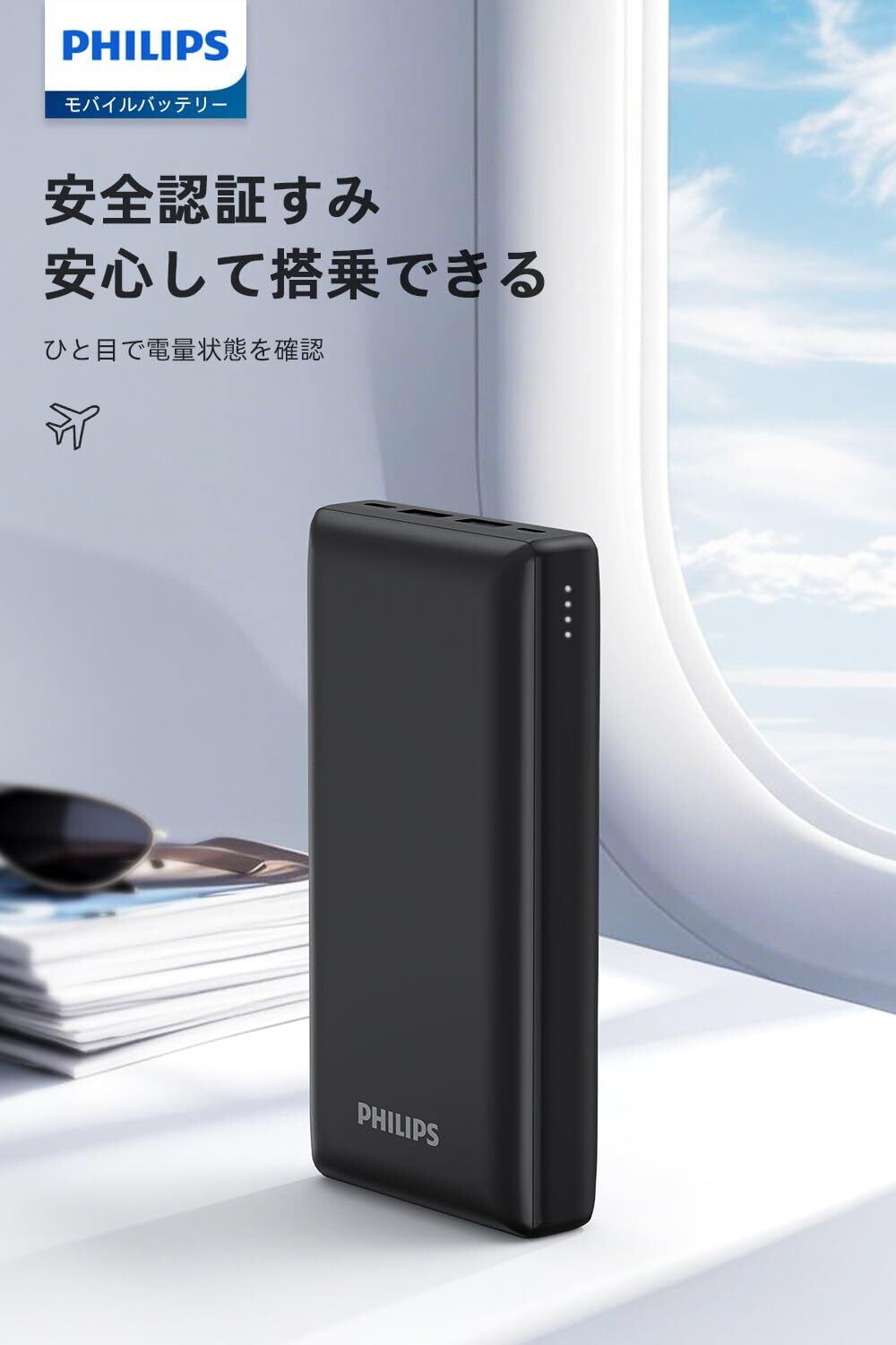 【新着商品】Philips (フィリップス) 【モバイルバッテリー 20000mAh PD 20W 3台同時充電】大容量バッテリー 急速充電器 type-c スマホ充電器 コンパクト 持ち運び 旅行 出張 停電対策 防災 DLP7721C ブラック