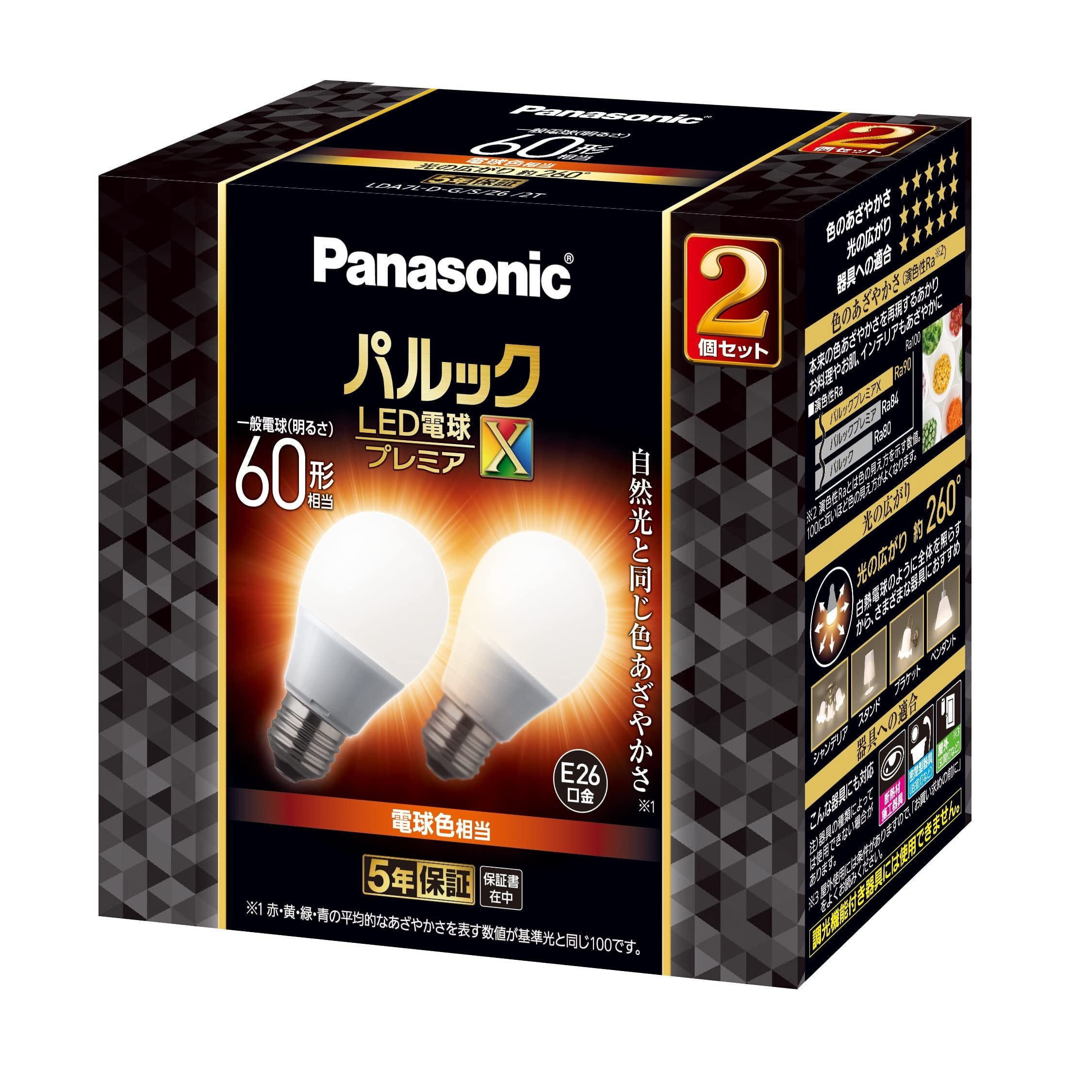【新春セール】パナソニック パルック LED電球 口金直径26mm プレミアX 電球60形相当 電球色相当(7.4W) 一般電球 空間全体を照らすタイプ (全方向タイプ) 2個入り 密閉器具対応 LDA7LDGSZ62TAN | ニコニコSHOP