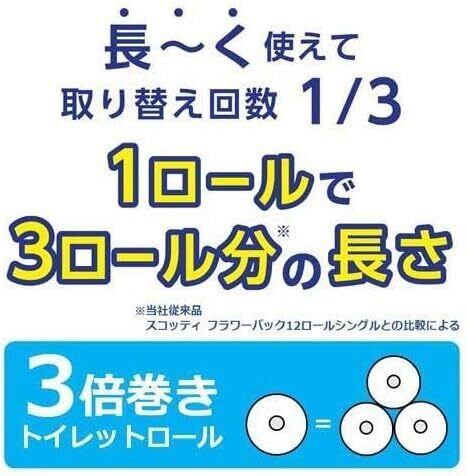 スコッティ トイレットペーパー フラワーパック 3倍長持ち シングル (150m*4ロール*2袋セット) SCOTTIE オリジナルティッシュ付 まとめ買い