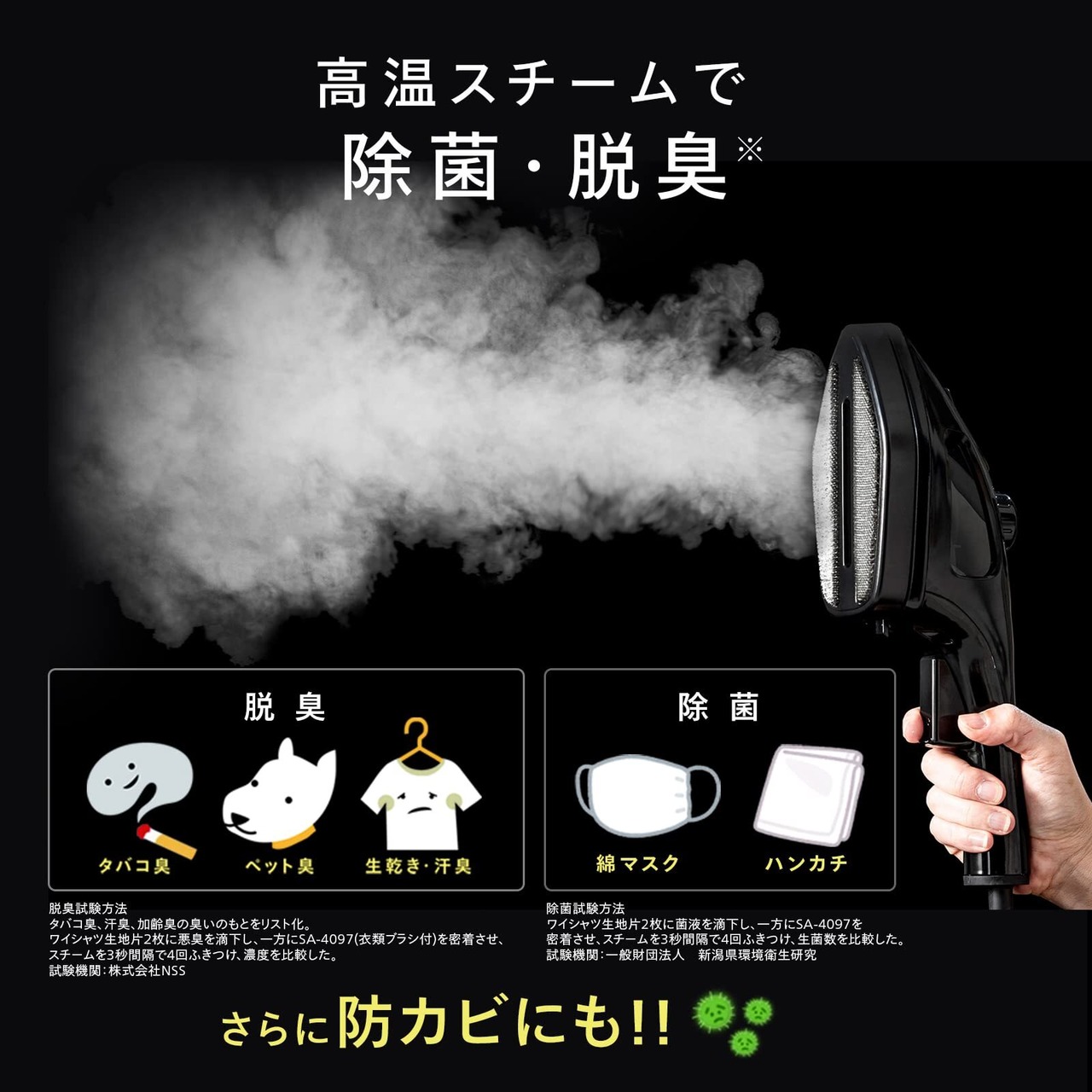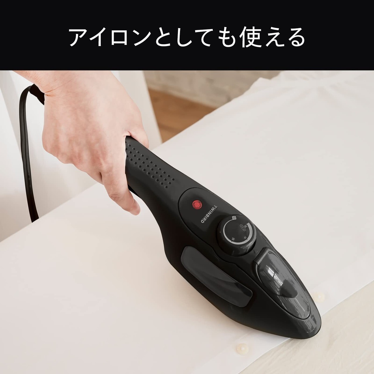 TWINBIRD(ツインバード) 衣類スチーマー アイロン ハンディ 除菌 脱臭 パワフルスチーム 3段階温度調節 ハンガーにかけたまま シワ伸ばし プレス ブラック SA-4095B