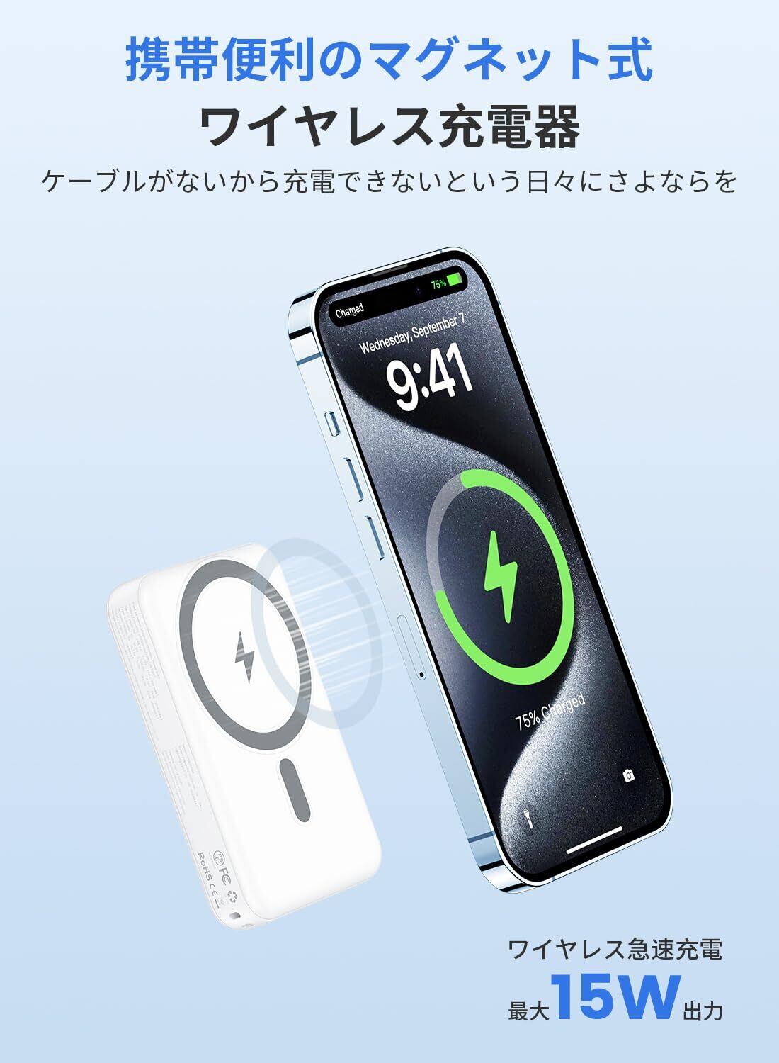 【新着商品】Wasuka モバイル バッテリー マグネット式 Magsafe対応 10000mAh 大容量 小型 軽量 急速充電 PD最大20W ワイヤレス充電 2台同時充電可能 マグセーフ充電器 iPhone16/15/14/13/12シリーズ & Android対応 コンパクト PSE認証済み 旅行/出張/災害用 機内持ち込み可 (ホワイト) | ニコニコSHOP