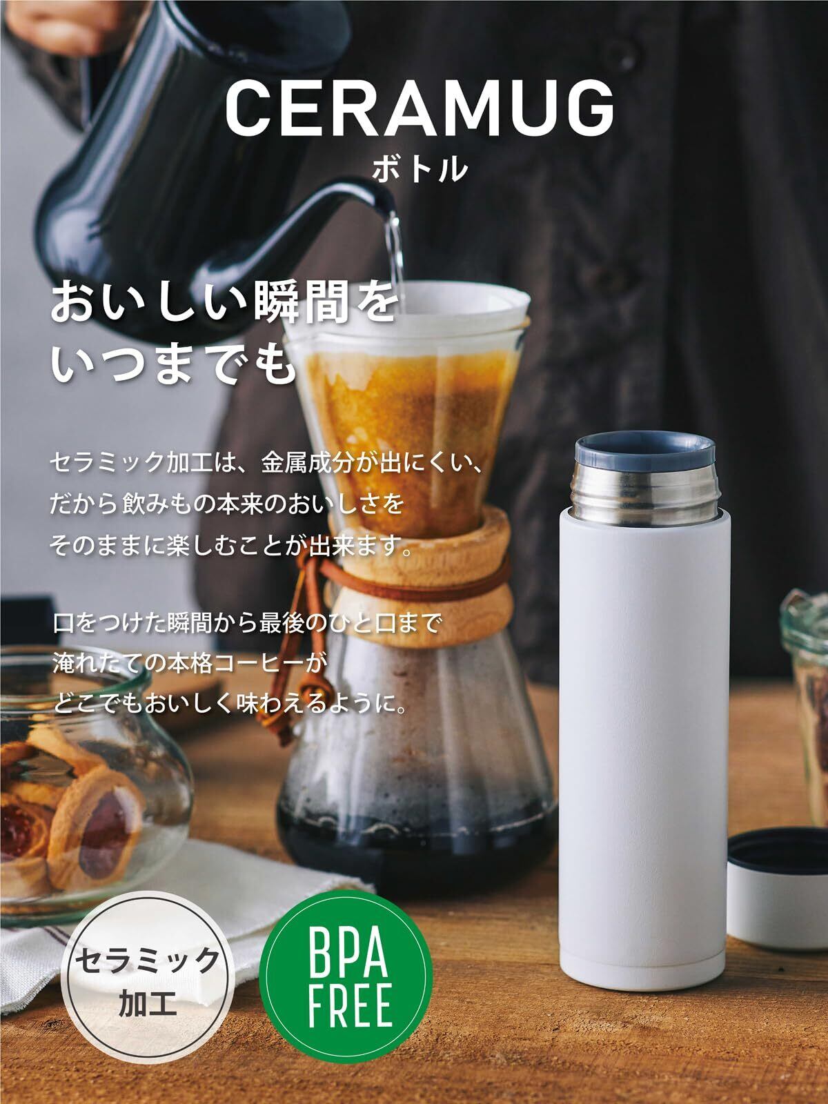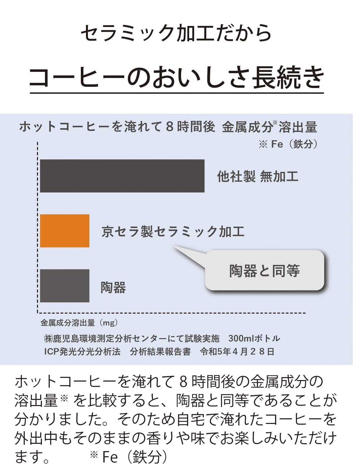 【内面セラミック塗膜加工】金属臭がせずコーヒーのおいしさ長続き※。人体や環境に影響を及ぼすおそれのある化学物質(BPA)を一切使用していません。フッ素不使用。※金属臭の感じ方には個人差があります