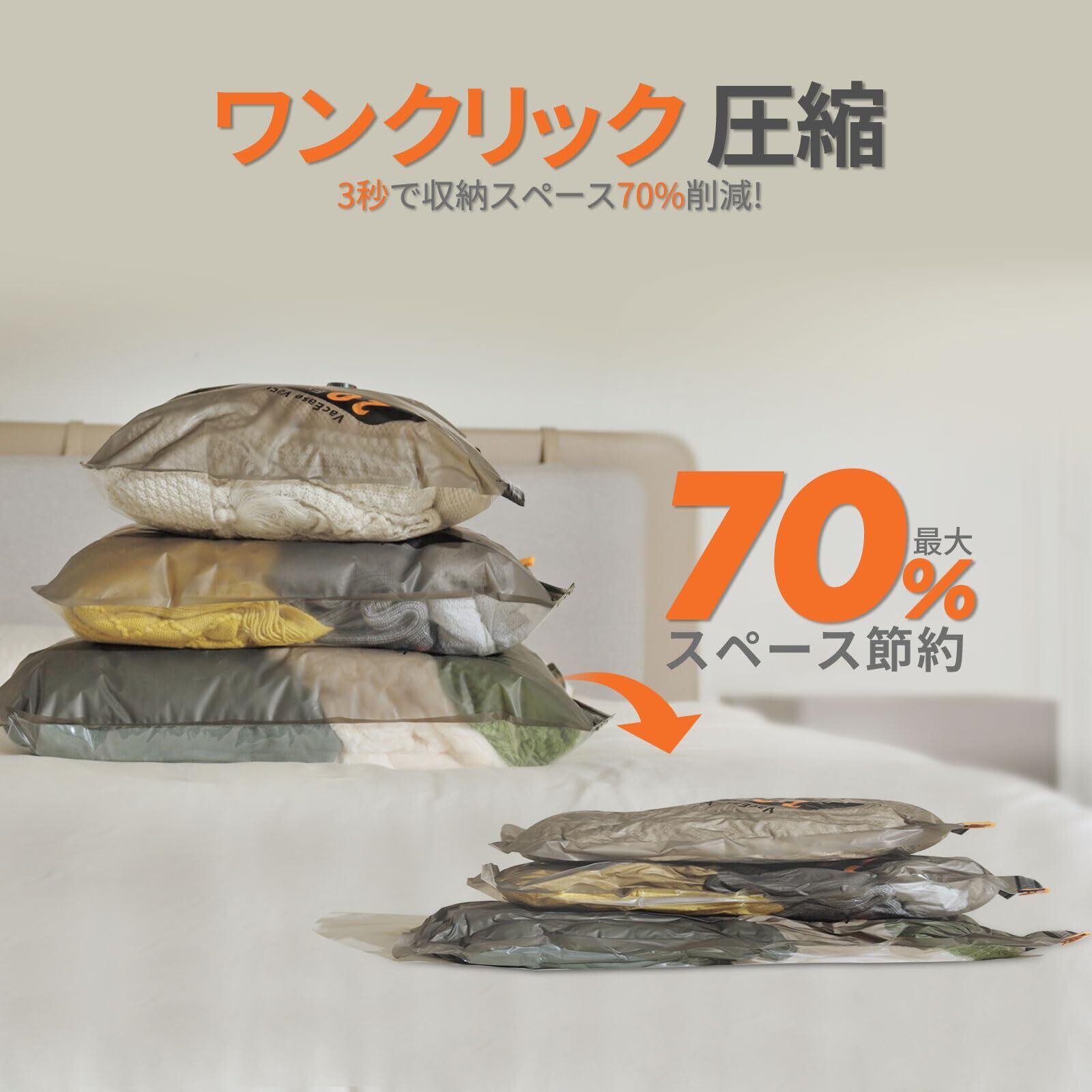 『2WAY活用』この衣類圧縮袋は改良版のPA+PE素材を採用し、旅行用に圧縮した後は、自宅で季節衣類の収納袋として再利用可能.1枚で2度お得なエコ設計.毛布や厚手のコートの収納はもちろん、旅行時の荷物コンパクト化、引っ越し時の衣類収納まで、最大70%スペースを節約できます.