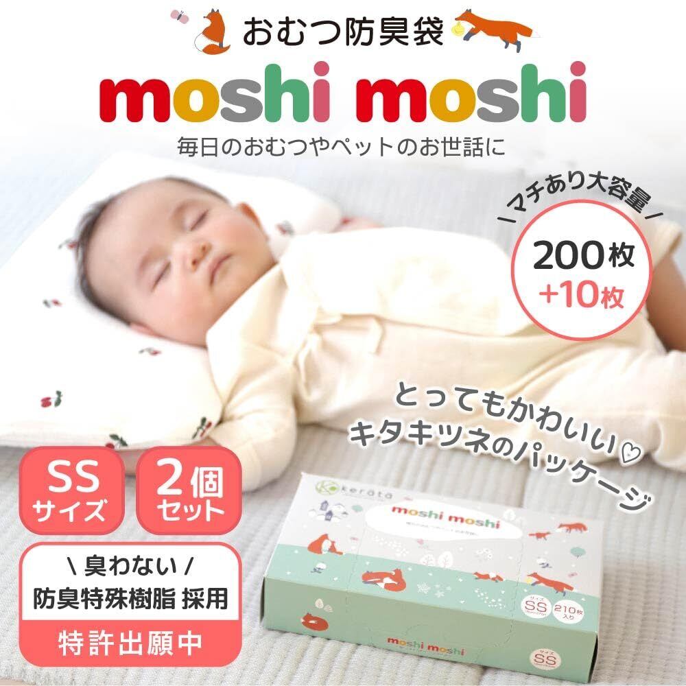 (ケラッタ) moshi moshi おむつ 防臭袋 臭わない 【マチ付きでおむつが2個入る】オムツ 消臭 (SSサイズ 210枚入) (2個セット)