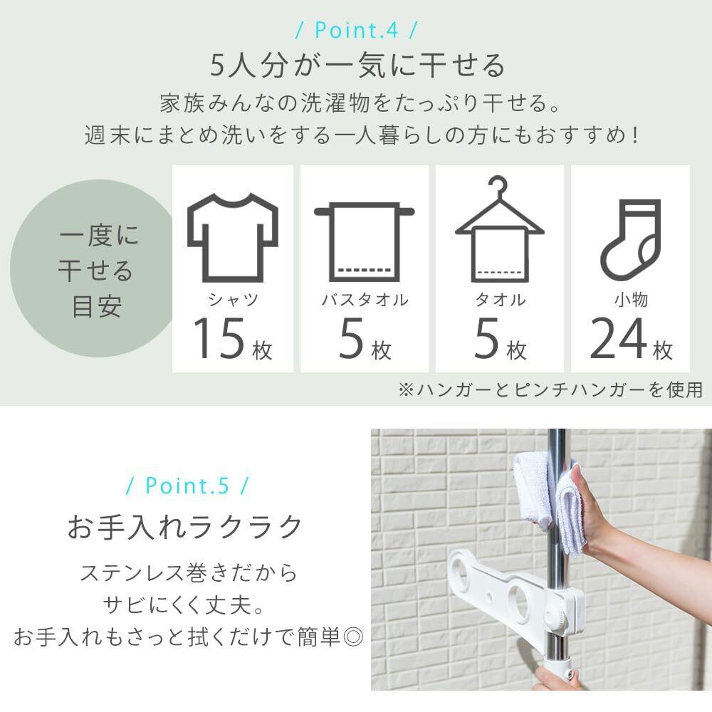 干す量の目安:約5人分(シャツ等15枚、バスタオル5枚、タオル5枚、小物24枚)