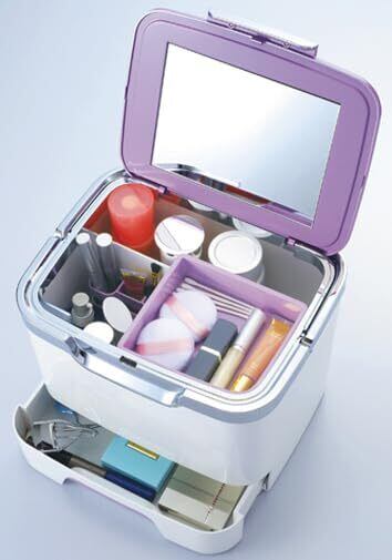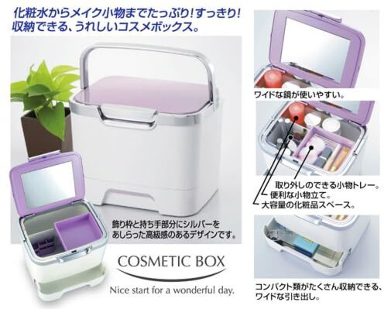 MIクリエーションズ コスメ メイク ボックス 化粧箱 化粧品 収納 ミラー付 鏡付 大容量 COB-350 パープル 日本製