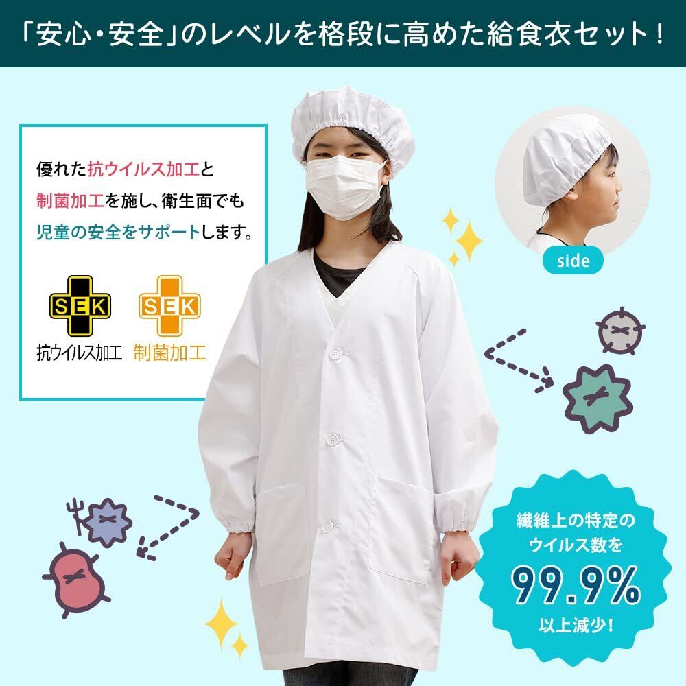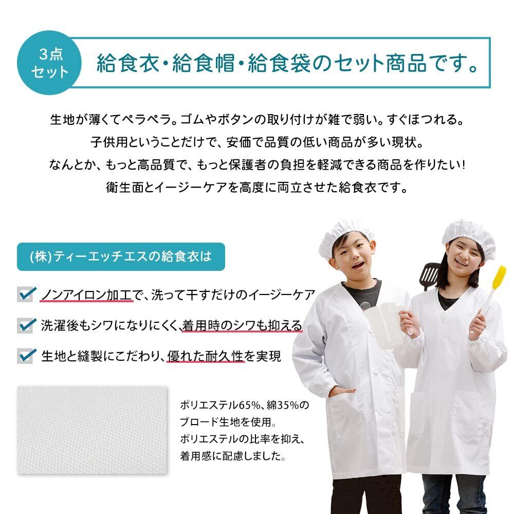 [ティーエッチエス] THS 給食着 給食エプロン 3点セット (給食帽子/給食袋) ノーアイロン シングル型 子供エプロン 小学生